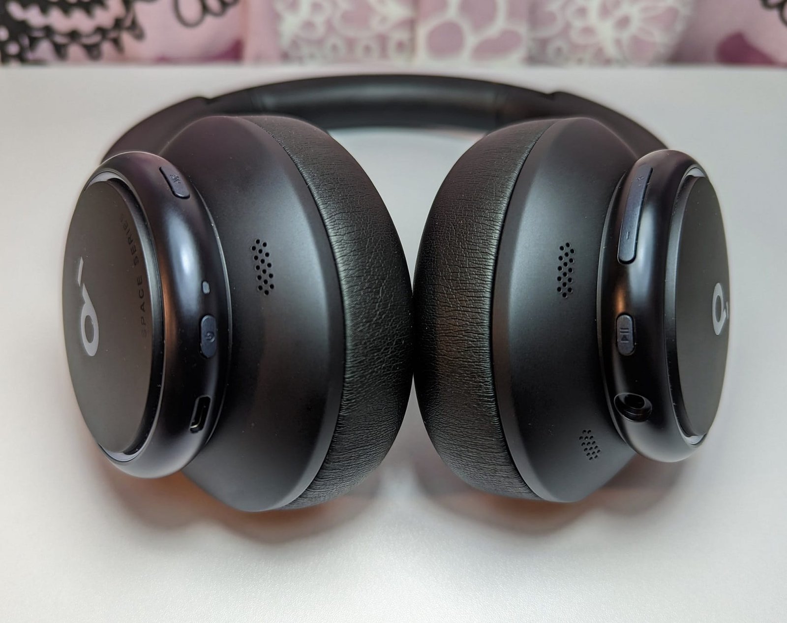 Vasemmasta kupista löytyy USB-C-latausliitin, virtapainike ja vastamelutoimintoa ohjaava painike. Oikeassa kupissa on puolestaan mainitsemani Play/Pause-painikkeen lisäksi 3,5 mm:n kuulokeliitin ja äänenvoimakkuuden säätimet. Matalat painikkeet ovat tuntumaltaan keskimääräistä paremmat, vaikka ne erottuvatkin kupin reunasta vain karkeita reunoja sormenpäillä tunnustelemalla. Positiivisena puolena painikkeet eivät heilu sivulta toiselle, joten niiden painallustuntuma on tukeva ja selkeä.