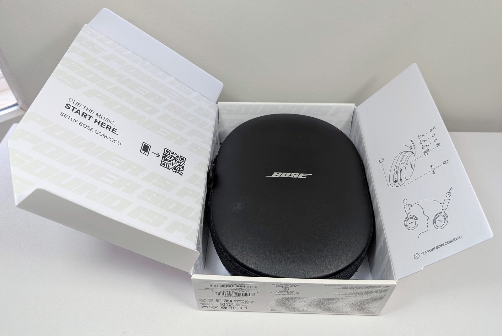 Bosen tuotteen unboxing-kokemuksesta ei kerry paljoa sanottavaa kuljetuskotelon ja parin kaapelin myötä. Valmistajalle täytyy kuitenkin antaa pisteet helposti avattavasta pahvipakkauksesta, joka ei suotta pidättele omistajaa pääsemästä uuteen hankintaansa käsiksi. Muutoin esillepano on pelkistetty ja mieleen jää turhien mainoslauseiden sijaan sanoma ”Sound is Power”. Ostajan odotetaan selvästi tietävän, mitä QuietComfort-sarja tarjoaa.