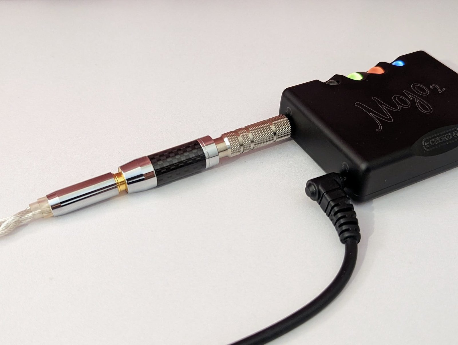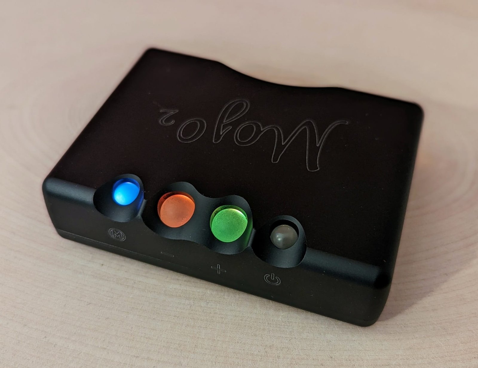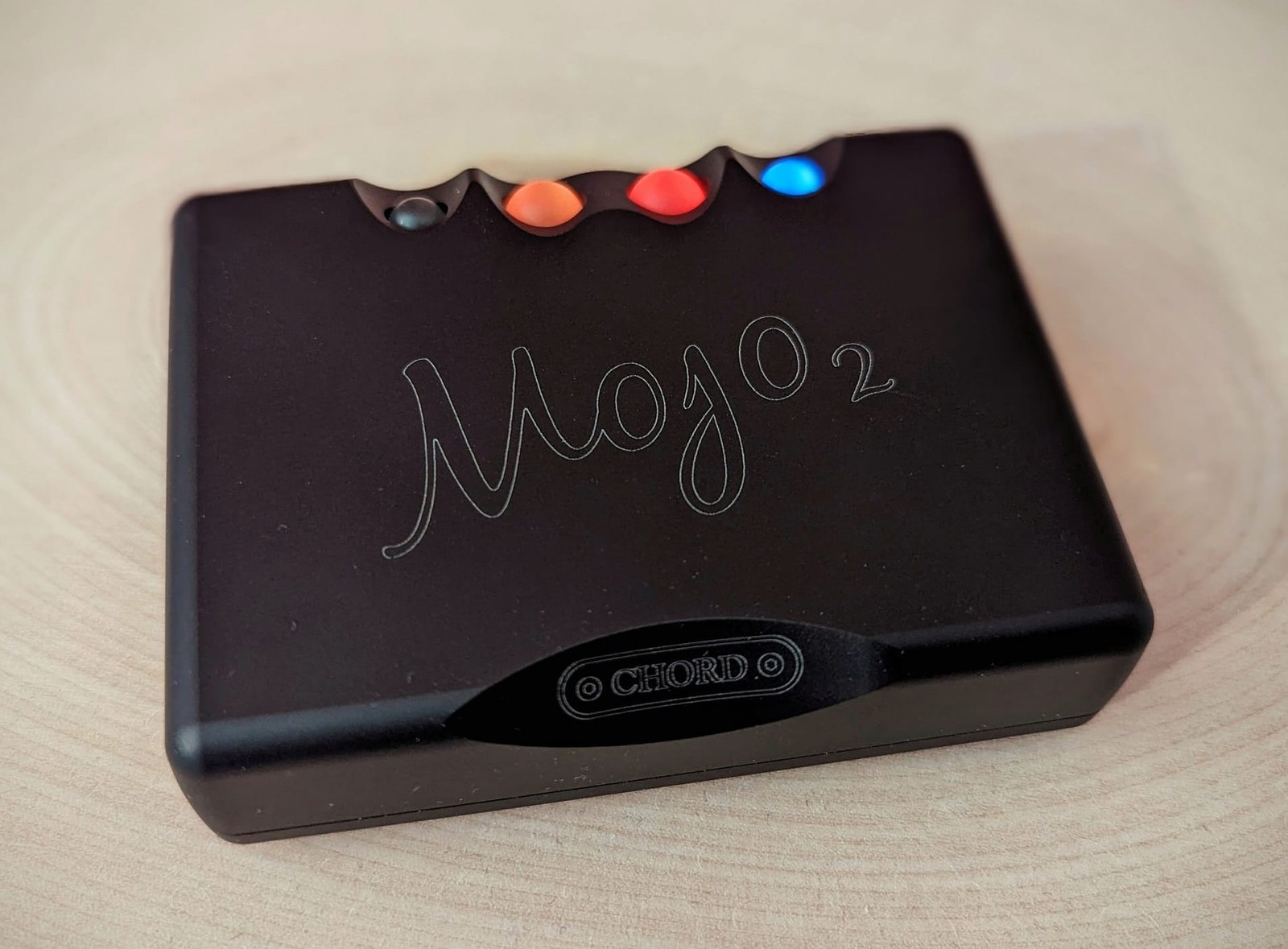 5 voltin latausliittimenä käytetään vanhaa micro-USB:tä, joten laitteen ostajan täytyy suurella todennäköisyydellä hankkia pidempi kaapeli erikseen, ellei sellaista satu löytymään ennestään laatikon pohjalta. Akun varaustaso ilmaistaan latausliittimen alapuolelle asennetulla ledillä ja latausnopeus virtapainikkeen värillä. Olen todennut lataamisen onnistuvan tavallisella puhelimen laturilla etenkin, jos sellainen tarjoaa Chord:in suositusten mukaisesti virtaa 2 ampeerin edestä. Latausaika näin asettuu lähelle 4 tuntia, joten latausnopeuteen ei valitettavasti ole tullut juurikaan parannusta. On melko käsittämätöntä, että 8 tunnin käyttöaika 2020-luvulla vaatii 4 tuntia lataamista. Akkua ei toki ole pakko ladata joka kerta täyteen ja hidas lataaminen saattaa pidentää sen käyttöikää. Aiemmasta Mojosta poiketen uusi malli ei enää juurikaan lämpene ladatessa tai käytön aikana. Sen akku ei myöskään tyhjene itsestään muutamassa päivässä, mikäli laitetta ei käytetä. Nämä ovat tärkeitä parannuksia.
