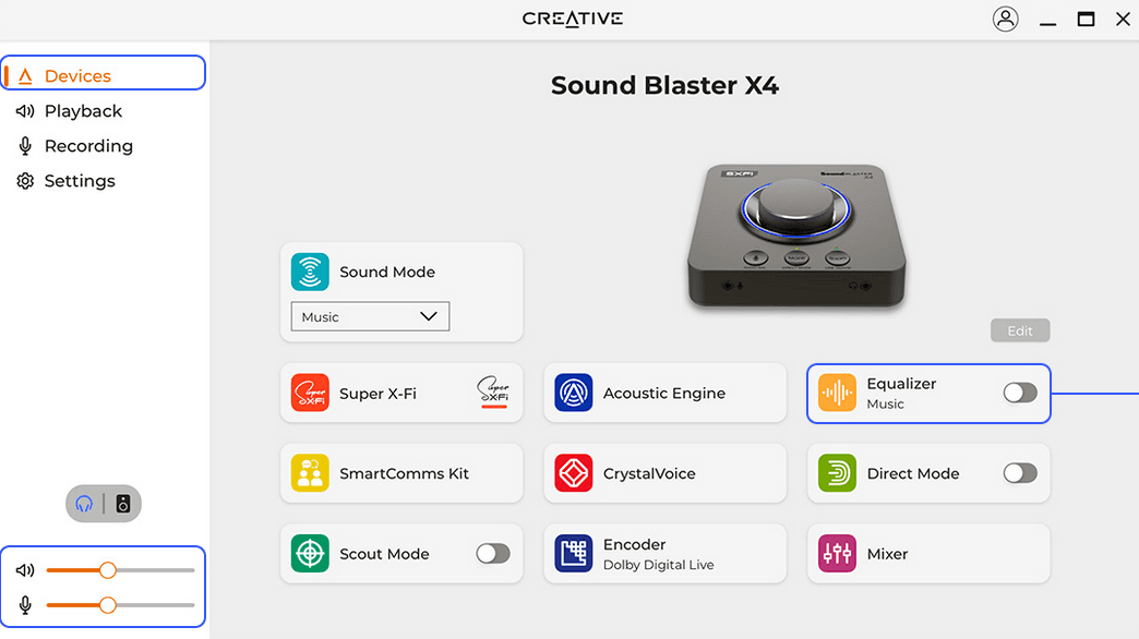 Vaikka Sound Blaster X4:n ominaisuuksista suurin osa liittyykin tilaäänen toistamiseen, pelaamiseen ja mikrofonin optimoimiseen, on laitteessa myös muutamia hyödyllisiä ominaisuuksia musiikin kuuntelua varten.