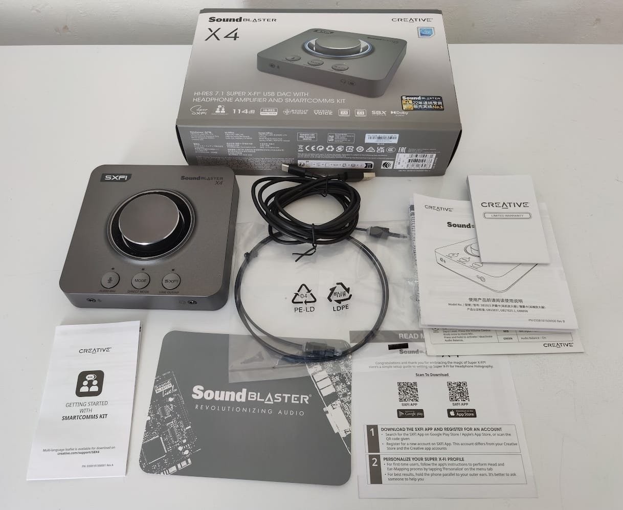 Sound Blaster X4 on Creativen valmistama ulkoinen äänikortti, joka on suunniteltu ensisijaisesti PC- ja konsolipelaajien tarpeisiin. Tässä arvostelussa otamme kuitenkin selvää, onko X4 riittävän hyvä myös hieman vakavampaan hifikäyttöön vai kannattaisiko pelaamista harrastavan musiikin ystävän hankkia erillinen laitteisto kumpaankin käyttötarkoitukseen. En käsittele esimerkiksi sitä, kuinka hyvin Sound Blaster X4:n Super X-Fi Battle Mode toimii Call Of Duty:a pelatessa, vaan olen kiinnostuneempi siitä, miltä laite kuulostaa 2700 euroa maksavien ZMF Verite -kuulokkeiden kanssa. Otan myös selvää, onko Sound Blasterista haastamaan yhtä tämän hetken suosituinta yhdistelmälaitetta, Topping DX3 Pro+:aa.