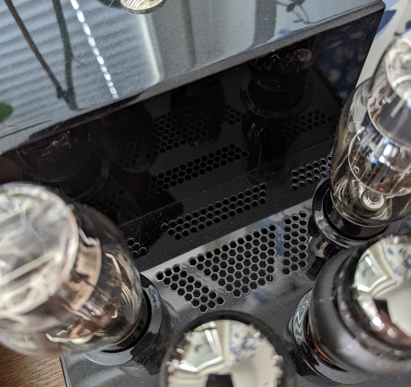 Muutoin kuvailisin vahvistinta tyylikkään ja siistin näköiseksi, koska siinä ei ole mitään ylimääräistä. Laitetta katsoessa huomio kiinnittyy etureunassa sijaitseviin neljään suureen putkeen. Takareunassa on puolestaan suuri metallinen laatikko, joka kätkee sisäänsä virtalähteen. Vahvistimen alla on poikkeuksellisen suuret jalat, jotka pitävät laitteen tukevasti kiinni pöydän tai laitetason pinnassa.