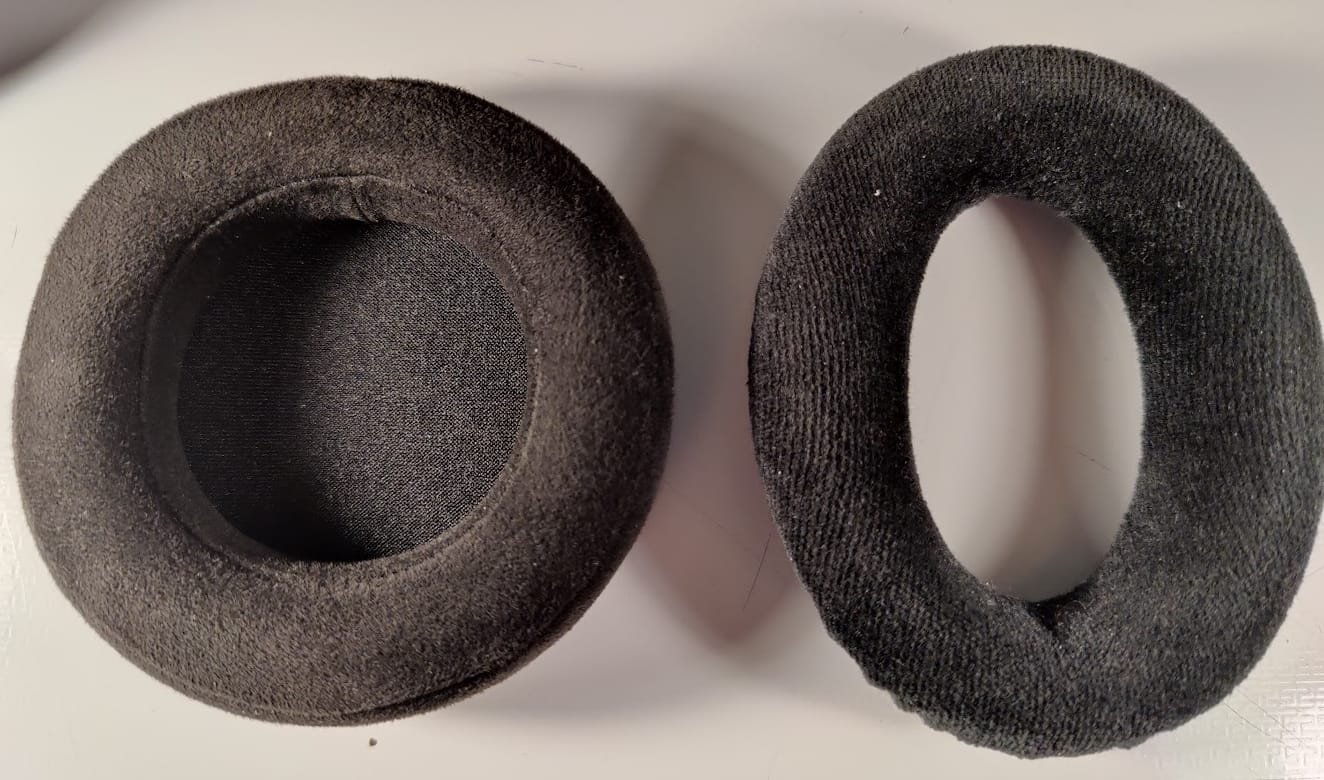 Kuulokkeiden mukana tulee sekä keinonahalla että mokkamateriaalilla päällystetyt korvapehmusteet, jotka tuntuvat molemmat laadukkailta. Pehmusteiden korva-aukon halkaisija on noin 5,5 cm, joten niissä on korville kohtuullisesti tilaa. Soikeampi muoto olisi ergonomisesti parempi, mutten usko kovinkaan monilla olevan ongelmia korvien mahduttamisessa pehmusteiden sisään. Syvyyttä pehmusteissa on sen sijaan vain hieman alle kaksi senttiä. Omat korvani eivät kosketa kuulokkeiden sisäosia, mutta lisäpaksuus tekisi pehmusteissa miellyttävämmän tuntuiset.