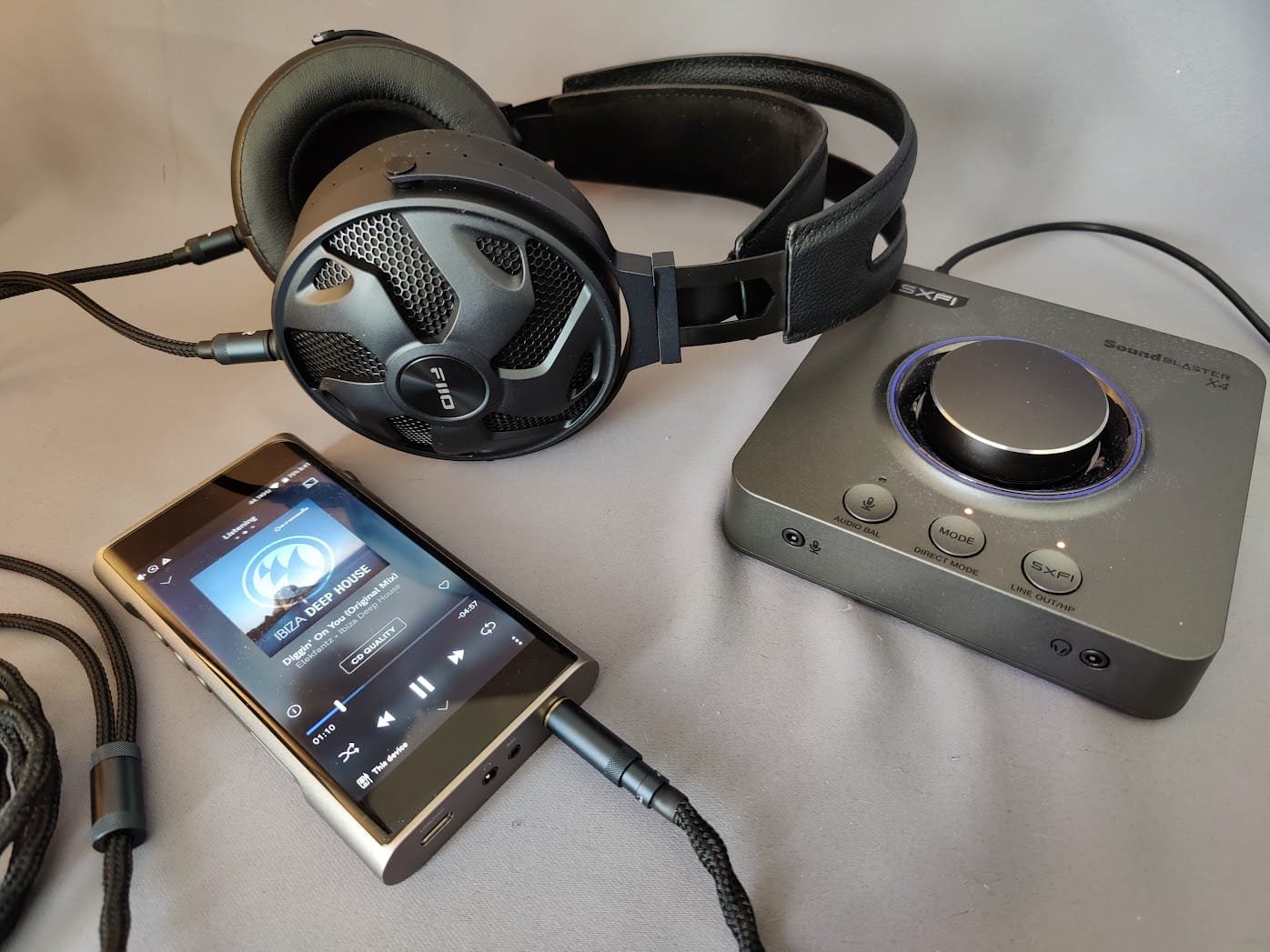 Shanling M6 Pro ja Creative Sound Blaster X4 toistivat kuulokkeita vaivatta.