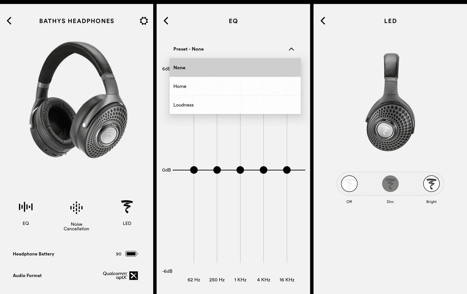 Sovelluksen 5-kanavainen taajuuskorjain on kummallinen, koska sillä voidaan tehdä säätöjä vain, kun kuulokkeet toistavat samalla ääntä. Taajuuskorjaaminen onnistuu 6 desibeliä ylös- ja alaspäin Focalin ennalta määrittämillä taajuuksilla. Tarjolla on myös kaksi valmista asetusta: basson ja yläkeskitaajuuksien määrää vähentävä ”Home” ja äänestä V-tyylistä tekevä ”Loudness”. Omista säädöistä voidaan tallentaa sovellukseen uusia ääniprofiileita, ja valittu taajuuskorjaus on käytössä myös muilla kuuntelulaitteilla.