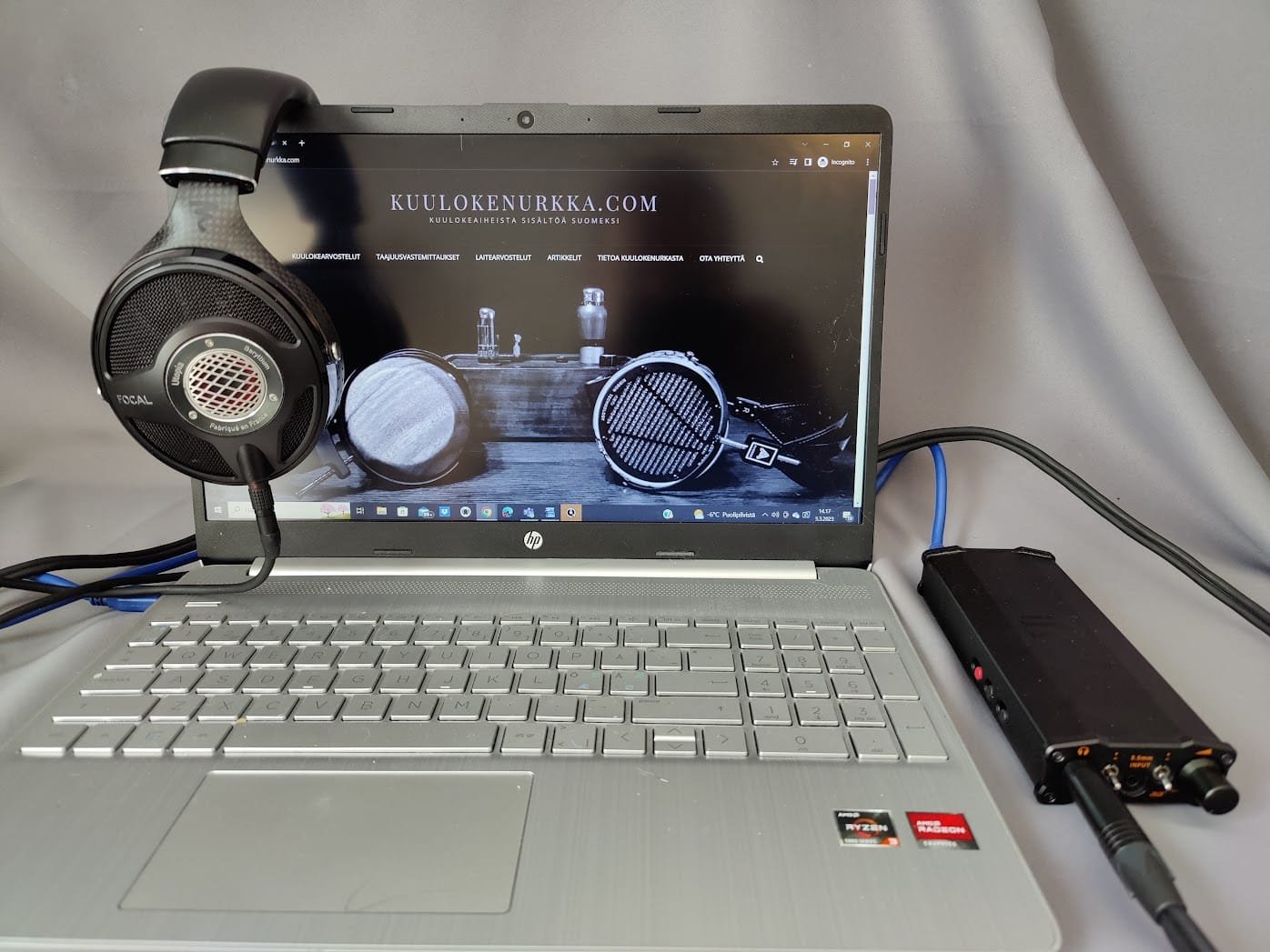 Utopia lepäämässä 300 euroa maksavalla Focalin valmistamalla kuuloketelineellä.