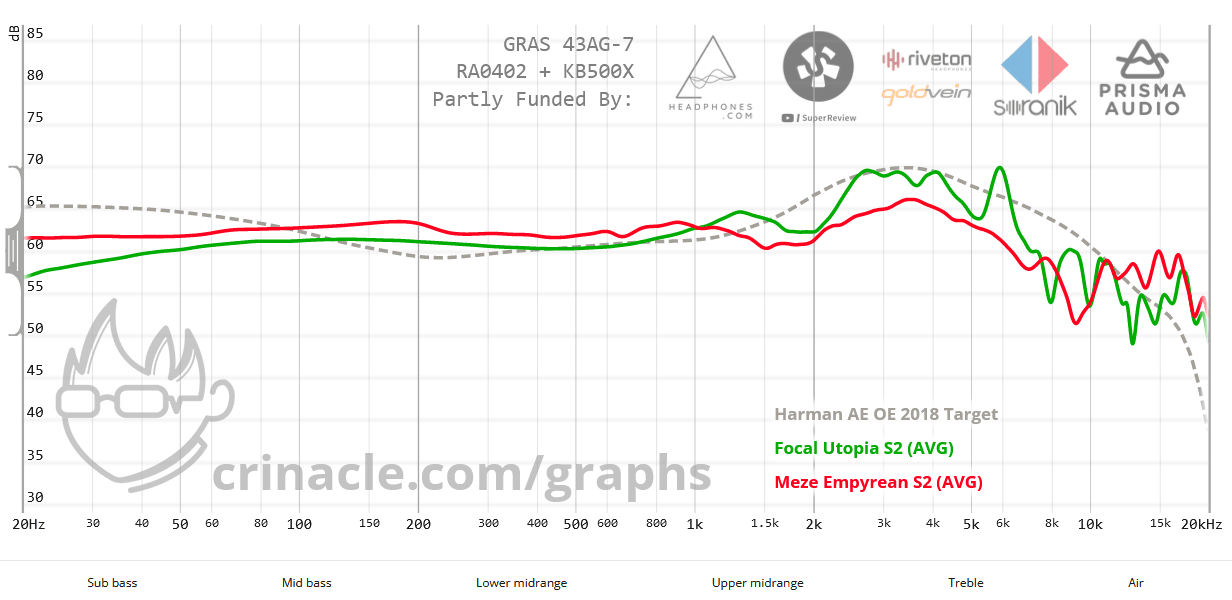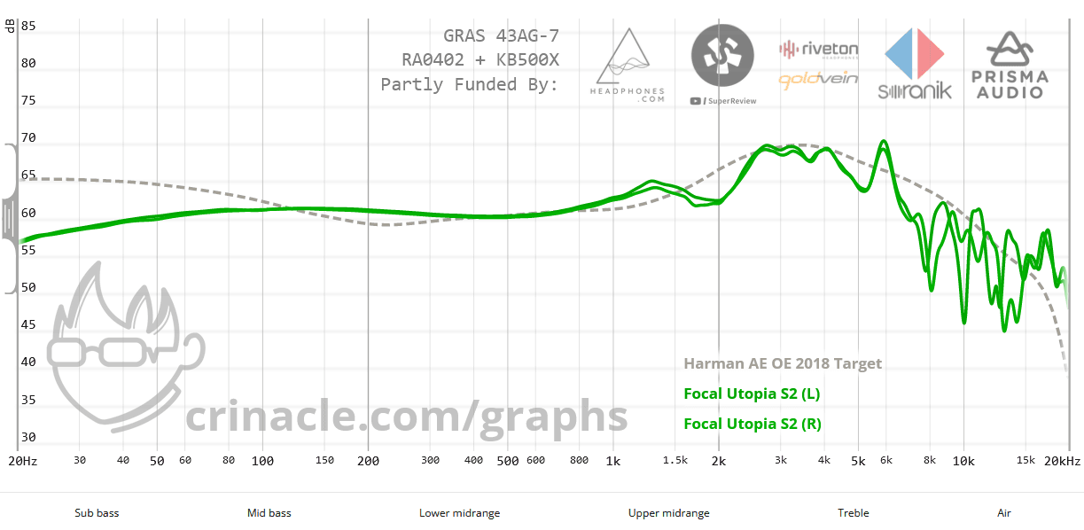 Crinaclen mittaustuloksista varmistuu, että Utopia toistaa yläkeskialueen voimakkaammin, jolloin se asettuu paremmin Harmanin tavoitekäyrälle.