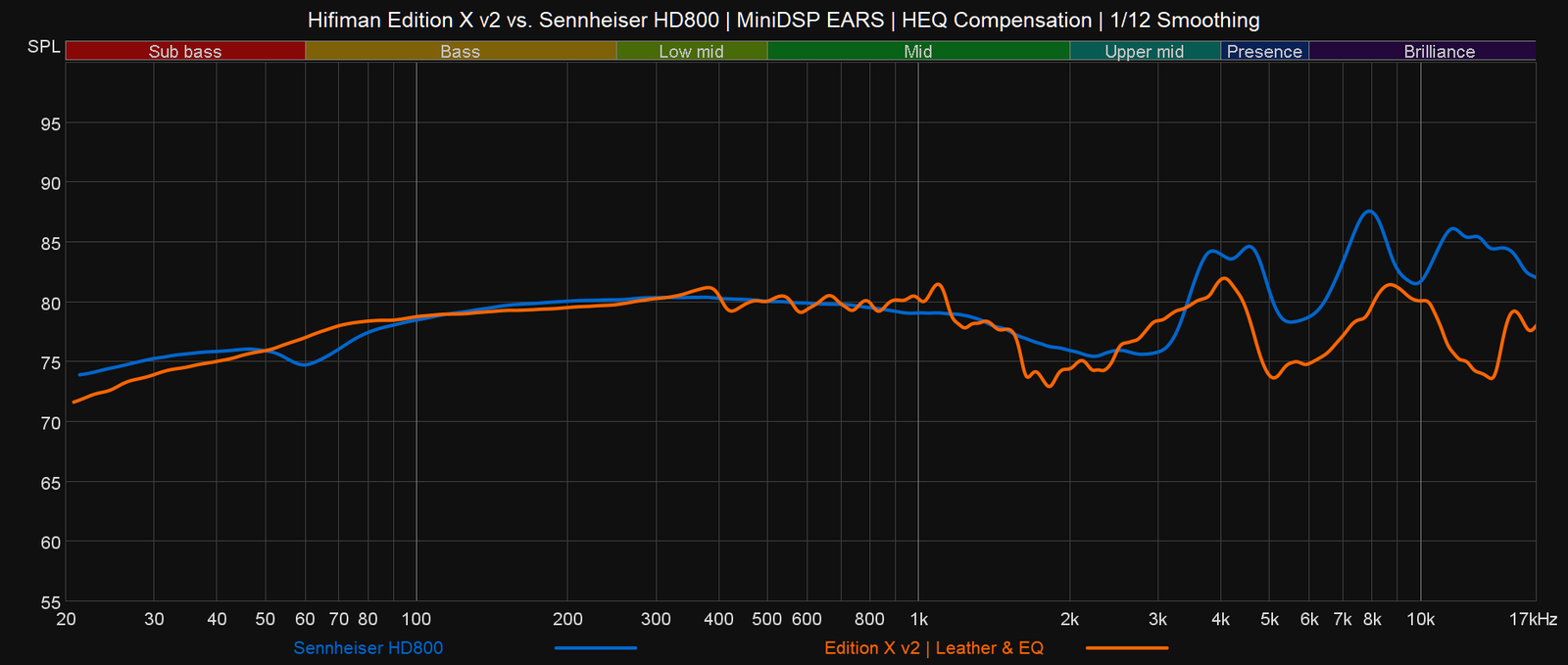 HD800:lla kuunnellessa kaikki huomio keskittyy ylempiin taajuusalueisiin, sillä preesensalue, 8 kHz:n ympäristö ja 10 kHz:n yläpuoliset ilmataajuudet korostuvat toistossa merkittävästi. Edition X v2:n diskantti kuulostaa HD800:aan verrattuna todella vaisulta ja vajaalta. Todellisuudessa diskantin määrä on kuitenkin lähempänä normaalia, joten kokonaisuus on huomattavasti HD800:aa tasapainoisempi ja luonnollisempi.