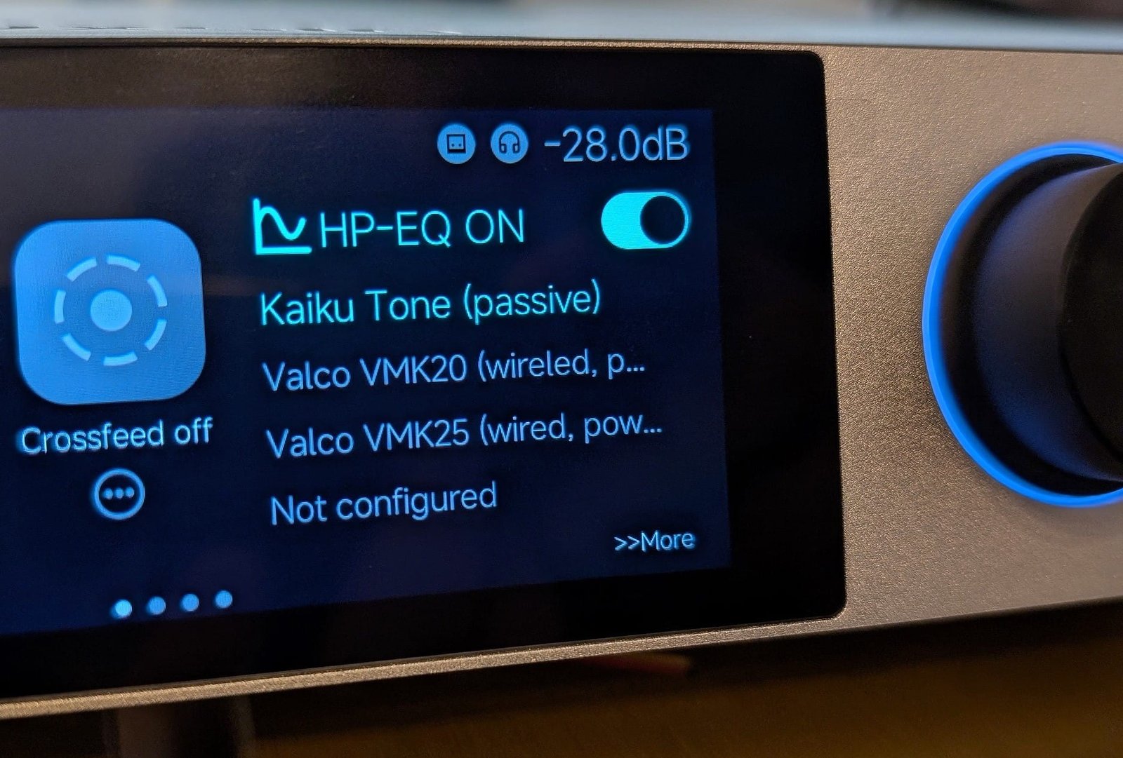 - Ominaisuuksia: Kosketusnäyttö, kaukosäädin, mobiilisovellus (Android/IOS), R2R-potentiometri, Crossfeed-toiminto, äänikuvan laajuuden säätö, automaattinen kuulokkeiden impedanssin tunnistus, HP-EQ/parametrinen taajuuskorjain (valmiit EQ-profiilit 2500+ kuulokemallille)
