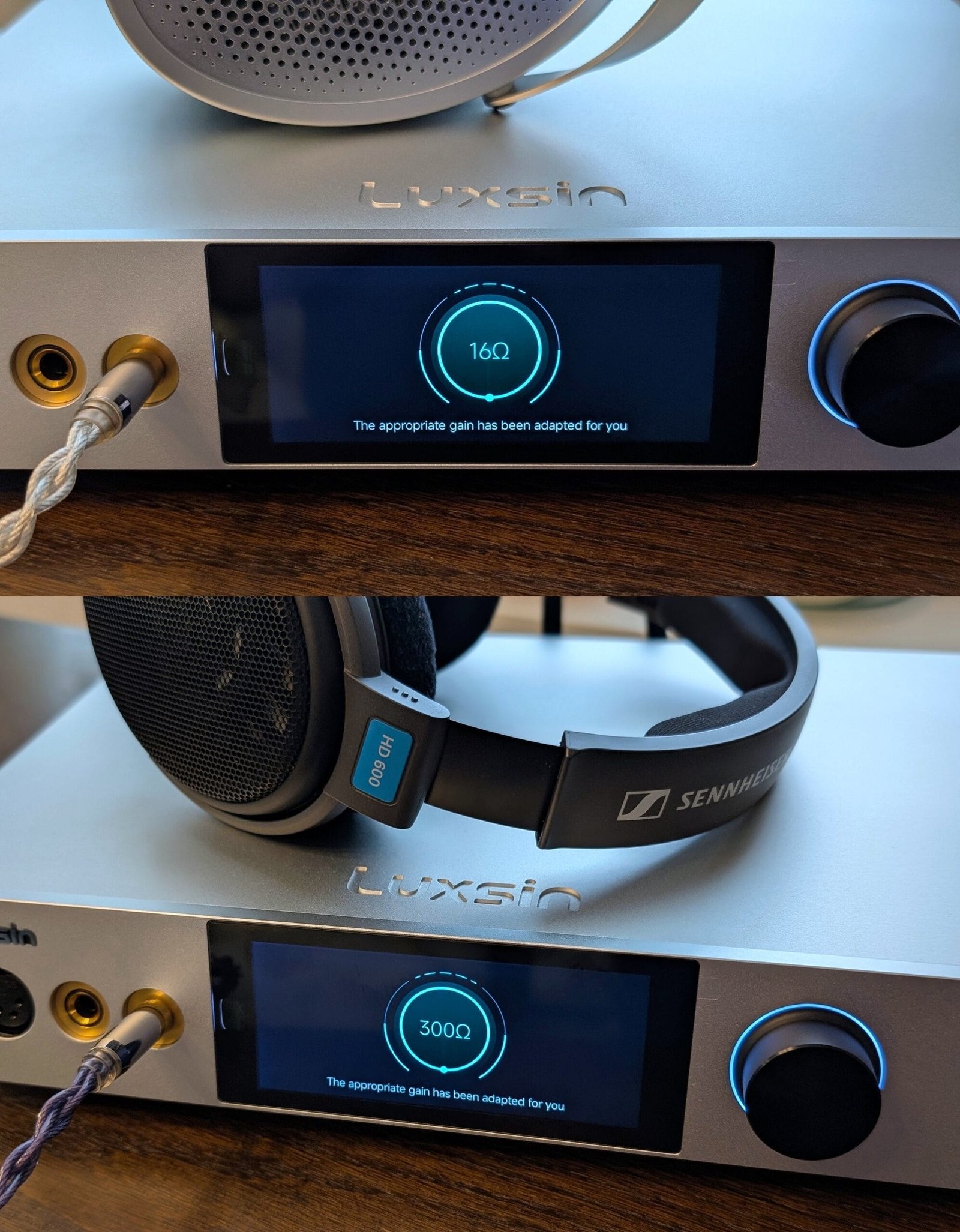 Luxsinin logiikalla matalan impedanssin (16–50 ohm) omaavat kuulokkeet laitetaan toistumaan low-gain-tilassa, kun taas esimerkiksi 300 ohmiselle Sennheiser HD 600:lle määritetään korkein gain-asetus. Impedanssi indikoi kuitenkin varsin huonosti kuulokkeiden herkkyyttä, johon gain-tason valinnan tulisi mieluummin pohjautua. Esimerkiksi monet matalaimpedanssiset planaarikuulokkeet ovat epäherkkiä, joten ne hyötyisivät korkeammasta gain-tasosta. Vastaavasti 300 ohmiset kuulokkeet, kuten Sennheiserit ja ZMF:t, ovat usein herkkiä, joten niille riittäisi matalampikin gain-taso. Käytännössä ero äänenvoimakkuudessa jää kuitenkin kolmen gain-tason välillä pieneksi, joten säätövaraa on aina tarjolla riittävästi molempiin suuntiin. Täten automaattinen impedanssin tunnistus tuntuu jopa hieman turhalta kikkailulta, mutta voidaan sitä toki hyödyntää kuulokemallikohtaisen äänenvoimakkuuden hallinnointiin, jos hyllystä löytyy impedanssiltaan riittävän erilaisia kuulokkeita. Manuaalisesti gain-tasoa päästään vaihtamaan harmillisesti vain valikoiden syövereistä, koska X9:stä puuttuu fyysinen gain-valitsin.