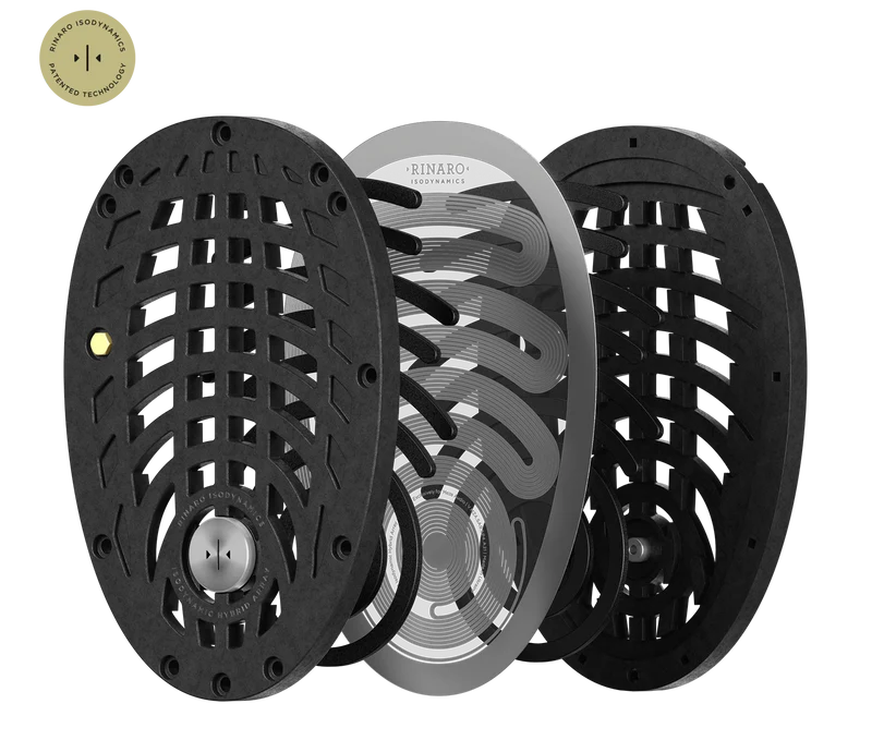- 92 x 63 mm planaarielementit (Rinaro Isodynamic Hybrid Array MZ6) + AMTS-teknologia (lisensoitu Dan Clark Audiolta)