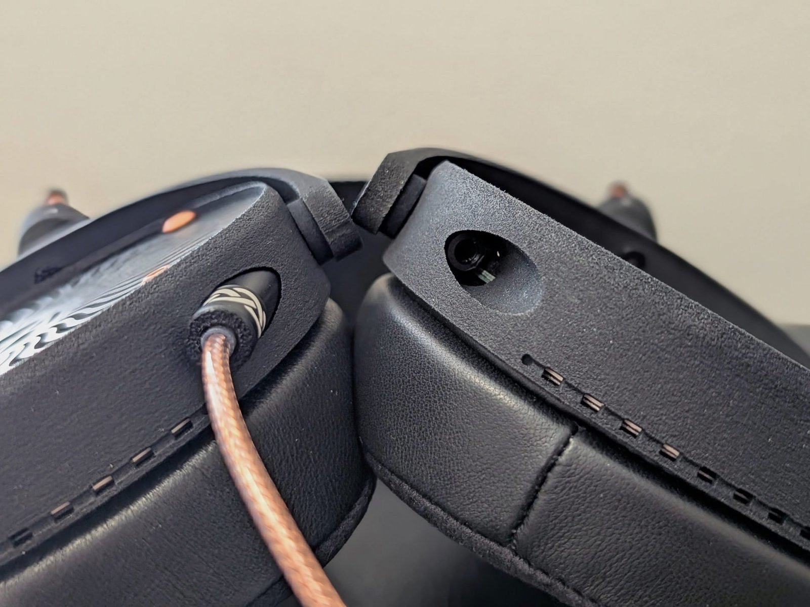 Kaapeli kiinnittyy Tungstenin kuppien takaosaan, jonne liittimet on upotettu melko syvän kourun pohjalle. Ratkaisu lienee myös ulkonäköperusteinen, sillä kaapelin liitin tahtoo painua upotuksessa kupin ja naarasliittimen rungon väliin, ellei sitä työnnetä kiinni juuri oikeassa kulmassa. Tämä kulma ei puolestaan ole mielestäni kaikkein luonnollisin, joten homma menee herkästi nysväämiseksi. Muutkin ovat aiheellisesti huomauttaneet samasta asiasta, mutta eipä kiinnitystoimenpide kuitenkaan lopulta pienen harjoittelun jälkeen rakettitiedettä ole.