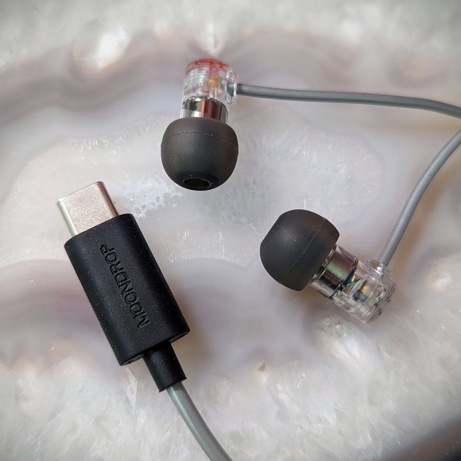 Tällä kertaa pysytään kuitenkin valmistajan in-ear-kuulokkeissa. Aiemmin kirjoittamani kolmen edullisen kuulokemallin vertailu sisälsi 20 euron hintaisen Chu-mallin, mutta haluan esitellä Moondropilta vielä toisenkin edullisen, melko uniikin, tuotteen. Kyseessä on 15 euroa maksava Quarks DSP, jonka kiinteän kaapelin jatkeena on D/A-muuntimen ja vahvistimen sisältävä USB-C-liitin. Kuulokkeet on suunniteltu helposti käytettäviksi esimerkiksi matkapuhelimen kanssa.