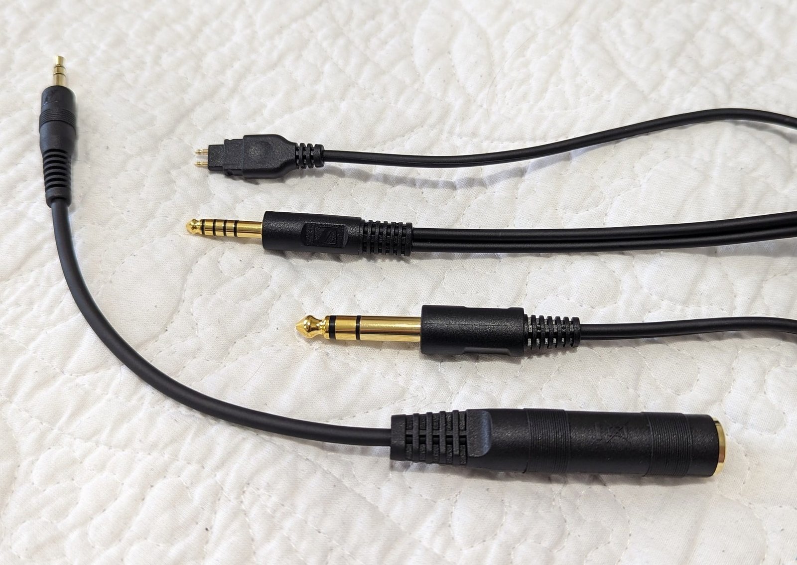 Kuulokkeiden mukana tulee positiivisena yllätyksenä sekä balansoitu (4,4 millimetrin liitin) että balansoimaton (6,35 millimetrin liitin) kaapeli. Nämä eivät ole 1,8 metrisinä myöskään ylipitkiä. Lisävarusteisiin sisältyy kankainen suojapussukka sekä 25 senttimetriä pitkä adapterikaapeli, jolla suurempi 6,35 millimetrin liitin saadaan muunnettua perinteiseksi 3,5 millimetrin liittimeksi.