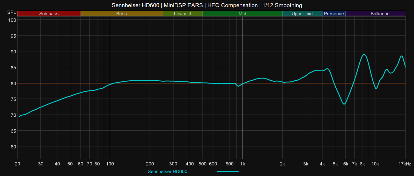 Keskitaajuudet ovat pitkälti Harmanin tavoitekäyrän mukaiset, mikä käy ilmi myös MiniDSP EARS -laitteen HEQ-kompensaatiota mukailevasta taajuusvasteesta. Mikään muu testaamani kuulokemalli ei mittaudu laitteella 300–4000 Hz:n väliltä yhtä suorana viivana, mikä ei toki ole suoraan tae hyvästä äänenlaadusta ottaen huomioon, että tavoitekäyrä on vain karkea yleistys. Esimerkiksi vastaavaa taajuusvastetta tavoitteleva AKG:n K371 kuulosti mielestäni erittäin epäluonnolliselta aivan kuin kukaan ei olisi kuunnellut kuulokkeita niiden suunnitteluvaiheessa. Siihen verrattuna HD 600:n ääni on äärimmäisen luonnollista ja vaivatonta.
