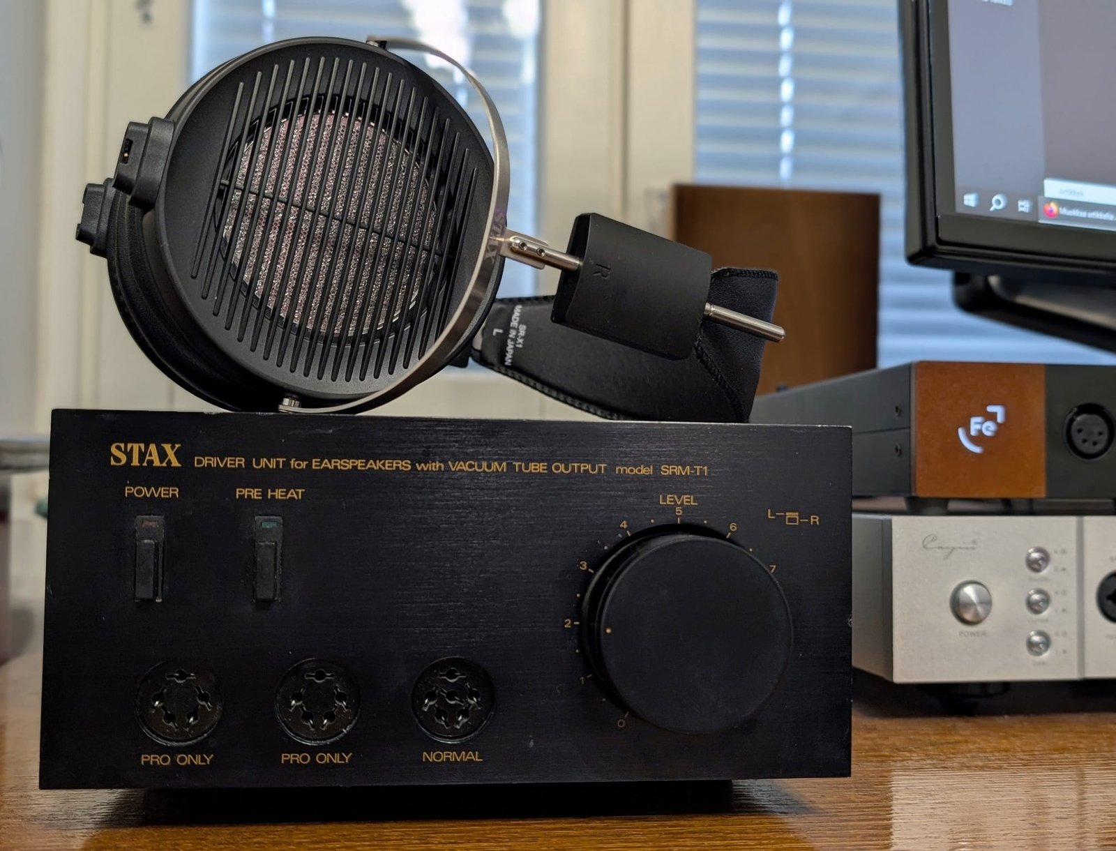 Koska pidän SRM-270S:ää jokseenkin ylihintaisena, käytössäni on ollut SRM-T1-putkihybridivahvistin, joka julkaistiin vuonna 1987 eli jo ennen syntymääni. Jotakin menneiden vuosikymmenten elektroniikan laadusta kertoo kuitenkin se, ettei laite äänenlaadullisesti juuri uudemmille kalpene, vaikka se olikin itseasiassa kautta aikojen ensimmäinen STAX:in julkaisema putkivahvistin. Arvosteluni rakentuu siis jokseenkin huvittavasti valmistajan vanhimman putkilaitteen ja uusimpien kuulokkeiden ympärille. Tervetuloa mukaan oppimismatkalleni, sillä en ole ylipäätään arvostellut aikaisemmin elektrostaatteja, vaikka olenkin kokeillut muutamia niistä eri yhteyksissä. Aikanaan omistin myös SR-L300:n, kunnes minulla meni hermot sen katkeilevaan muoviseen pääpantaan.