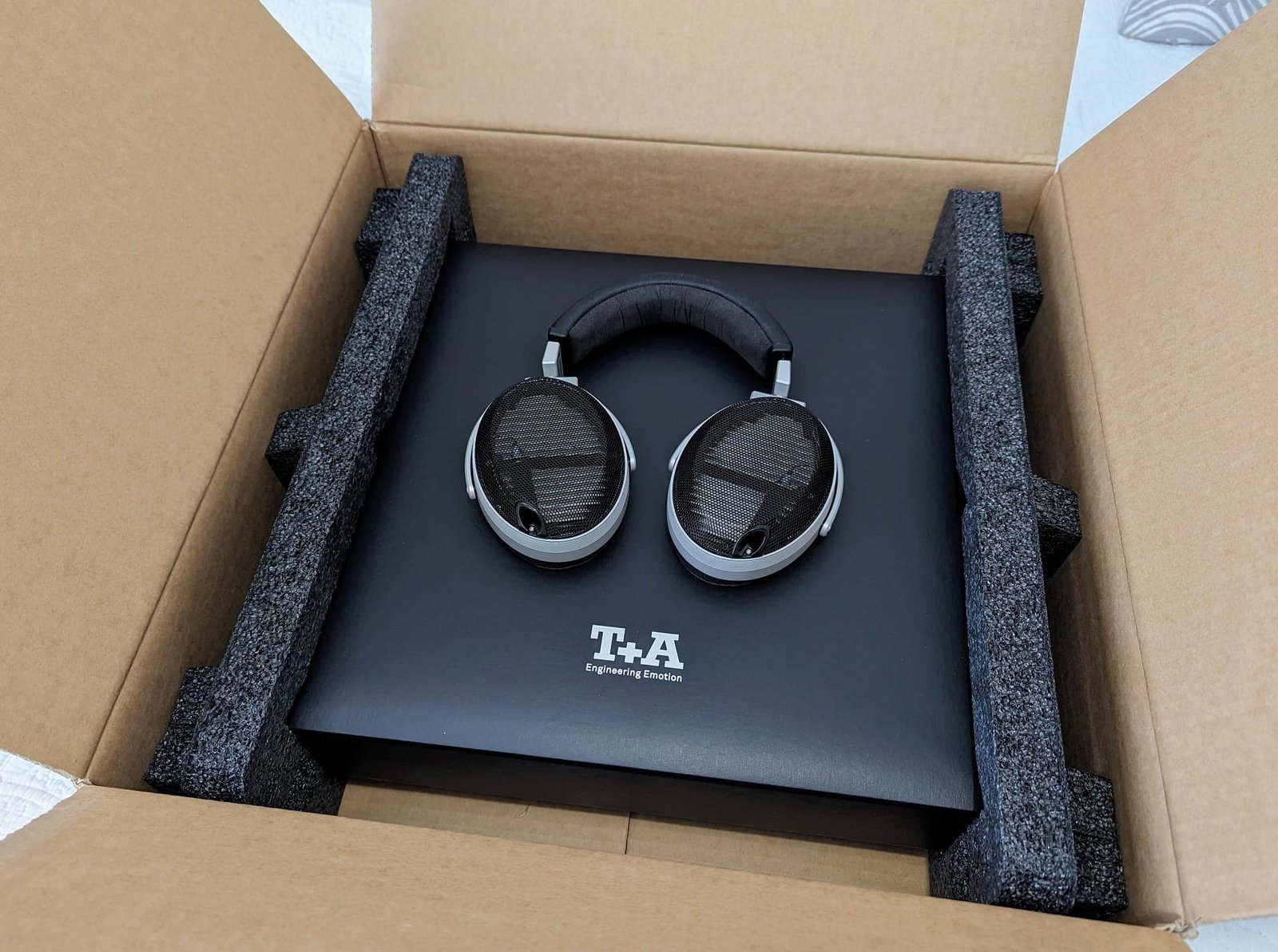 Kun sain käsiini kahdet T+A:n kuulokkeet sisältävän postipaketin, hämmästyin välittömästi sen suurta kokoa ja painoa – ehkä Mareksound oli pakannut kuulokkeet erittäin huolella? Todellisuudessa kaksi valtavaa laatikkoa olivatkin lopulta T+A:n omia. En yllättyisi jos ne olisi suunniteltu alun perin valmistajan vahvistimille tai muulle suurempikokoiselle elektroniikalle. Pieniä eivät olleet myöskään sisältä löytyneet kuulokepakkaukset, vaan niihinkin mahtuisi kuhunkin helposti kahdet kuulokkeet. Näin suuret pakkaukset tekevät varmasti useimpiin vaikutuksen ja luovat mielikuvan arvokkaasta tuotteesta. Pienenä ulkonäöllisenä erona Solitaire P:n laatikko on musta ja edullisemman P-SE:n harmaa.