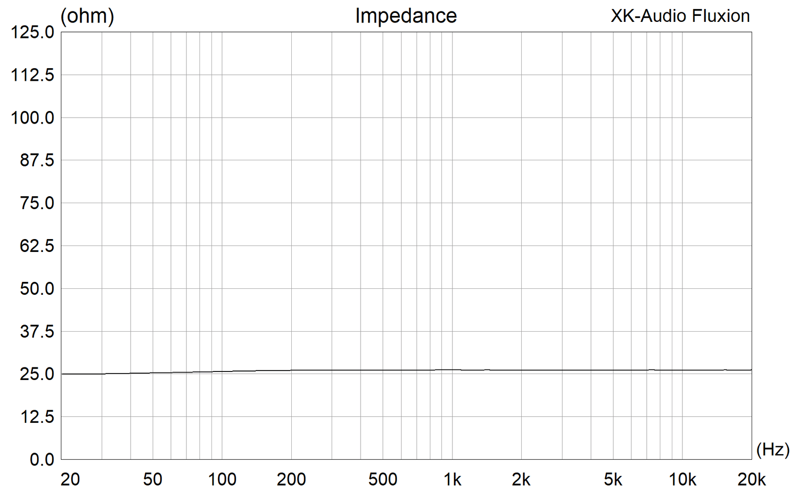 Impedanssin osalta kuulokkeissa ei ole mitään yllättävämpää, vaan koko taajuuskaista noudatttaa ilmoitettua 25 ohmia. Hifimanin vaikeimmin toistettavista kuulokkeista, kuten HE-6- ja Susvara-sarjasta poiketen Fluxion on myös herkkä (96dB/mW), joten sitä on helppo toistaa jo perusvahvistimilla. Tämä on omissa kirjoissani selkeää plussaa XK-Audion suuntaan.