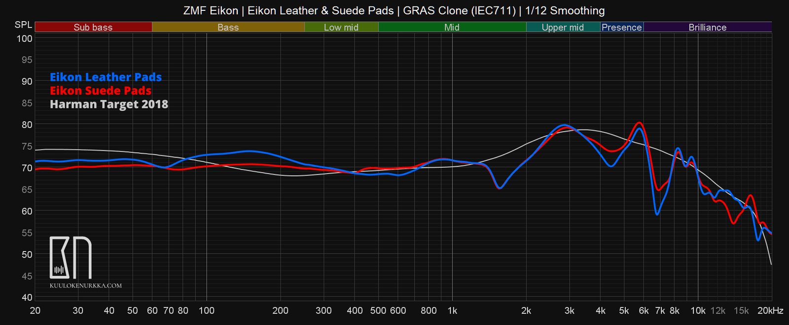 Keskitaajuuksien merkitys musiikissa on niin suuri, että taajuusvasteen yksittäiset poikkeamat ovat väkisinkin kuultavissa tavalla tai toisella. Eikonin kohdalla tilanne korjaantuu joiltakin osin lineaarisemman taajuusvasteen tarjoavilla mokkapehmusteilla, mutta esimerkiksi 1,5–2,5 kHz:n väliin jää edelleen epätavallinen kolo, joka on toisinaan kuultavissa. Mokkapehmusteet tekevät mielenkiintoisesti äänestä hieman täyteläisempää kuin nahkapehmusteet, sillä 400–800 hertsin välille tulee lisää energiaa. Nahkapehmusteet ovat edelleen parhaimmillaan mielenkiintoisempaa kuunneltavaa, kun taas mokkapehmusteilla vältetään kuulokkeiden heikoimmat hetket.