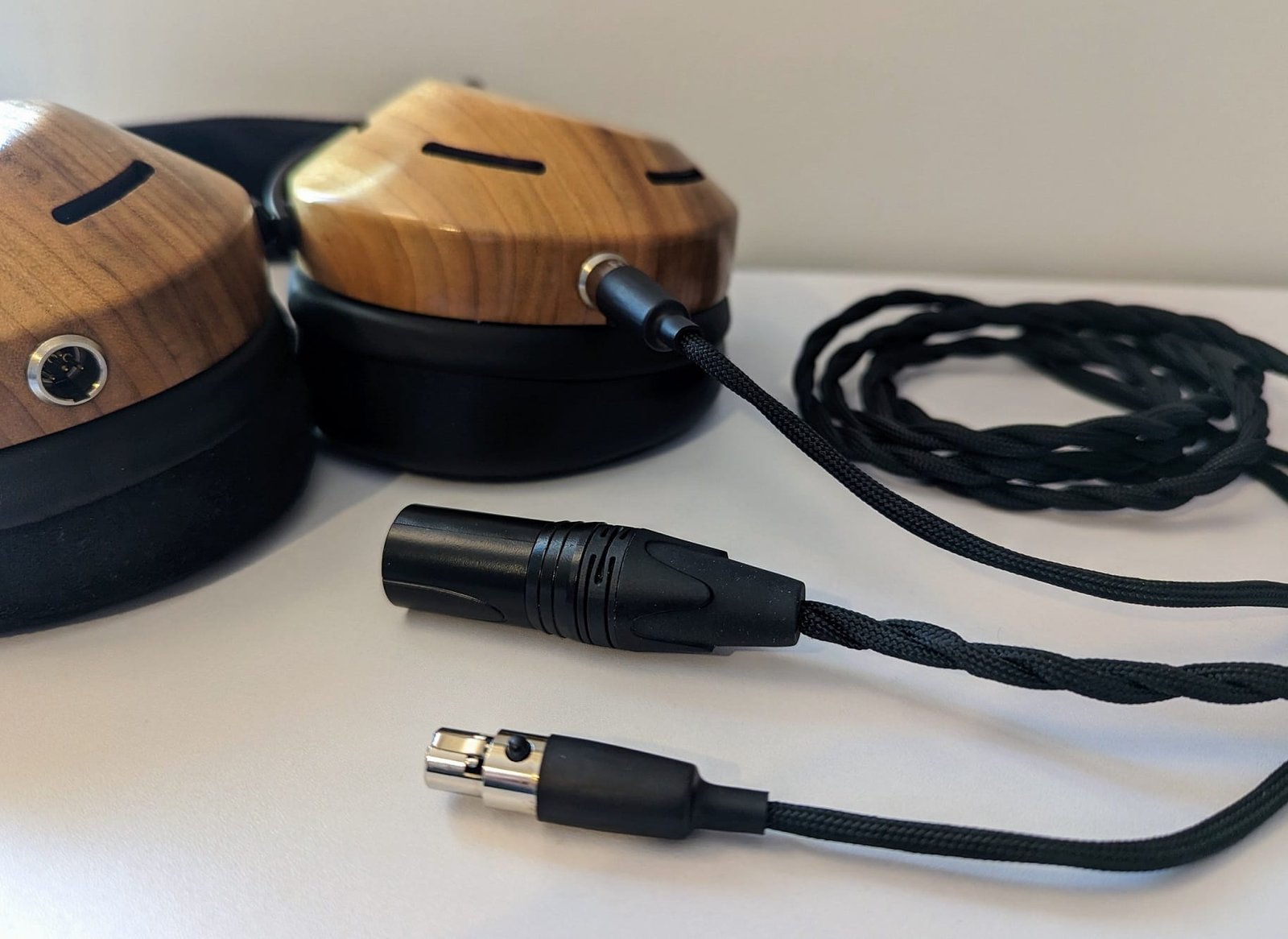 Kuulokkeiden mukana toimitetaan samanlainen noin 165 cm pitkä kaapeli kuin muidenkin ZMF-mallien kanssa. Kaapeli kiinnittyy kuulokkeisiin kahdella 4-pin-mini-XLR-liittimellä, ja vahvistimeen kiinnittyvä liitin on valittavissa ostovaiheessa. Koska Eikon ei ole enää listattuna ZMF:n kaupassa, en pääse tarkistamaan, toimitettiinko kuulokkeiden mukana oletuksena myös toinen kaapeli.
