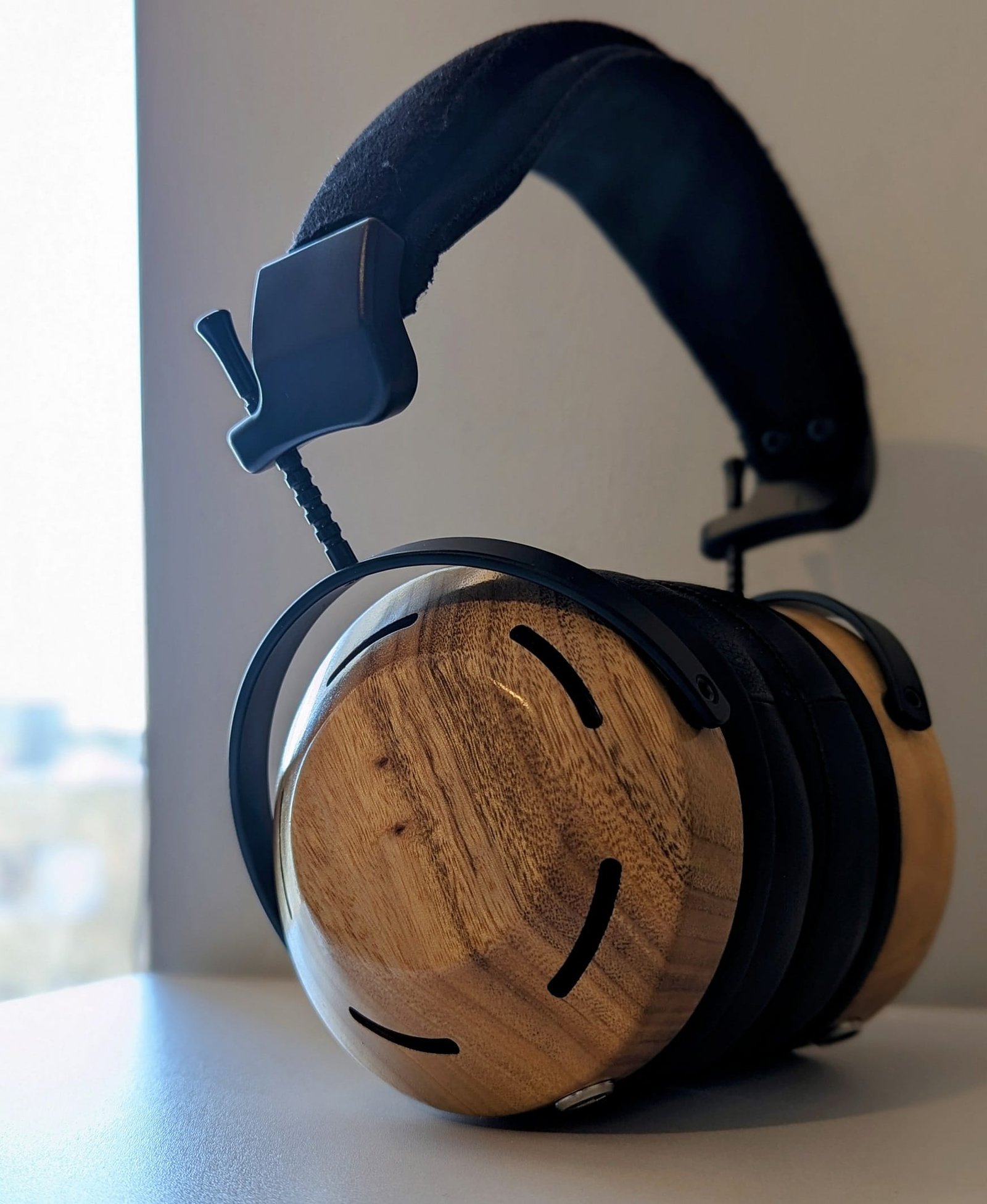 Omat kuulokkeeni on valmistettu vaaleasta, upeasti viimeistellystä, kamferipuusta, joka on varsin kevyttä. Suurista puukupeista huolimatta Eikon onkin testaamistani ZMF-malleista yksi kevyimmistä, sillä se painaa ”vain” 491 grammaa monien muiden mallien ollessa 600 gramman painoisia. Vaikka lähes 500 gramman paino kuulostaakin edelleen suurelta, uskoisin kuulokkeiden tuntuvan erinomaisen istuvuutensa ansiosta useimpien mielestä mukavalta. Esimerkiksi Audezen suljetut LCD-sarjan kuulokkeet painavat 150–200 grammaa enemmän.