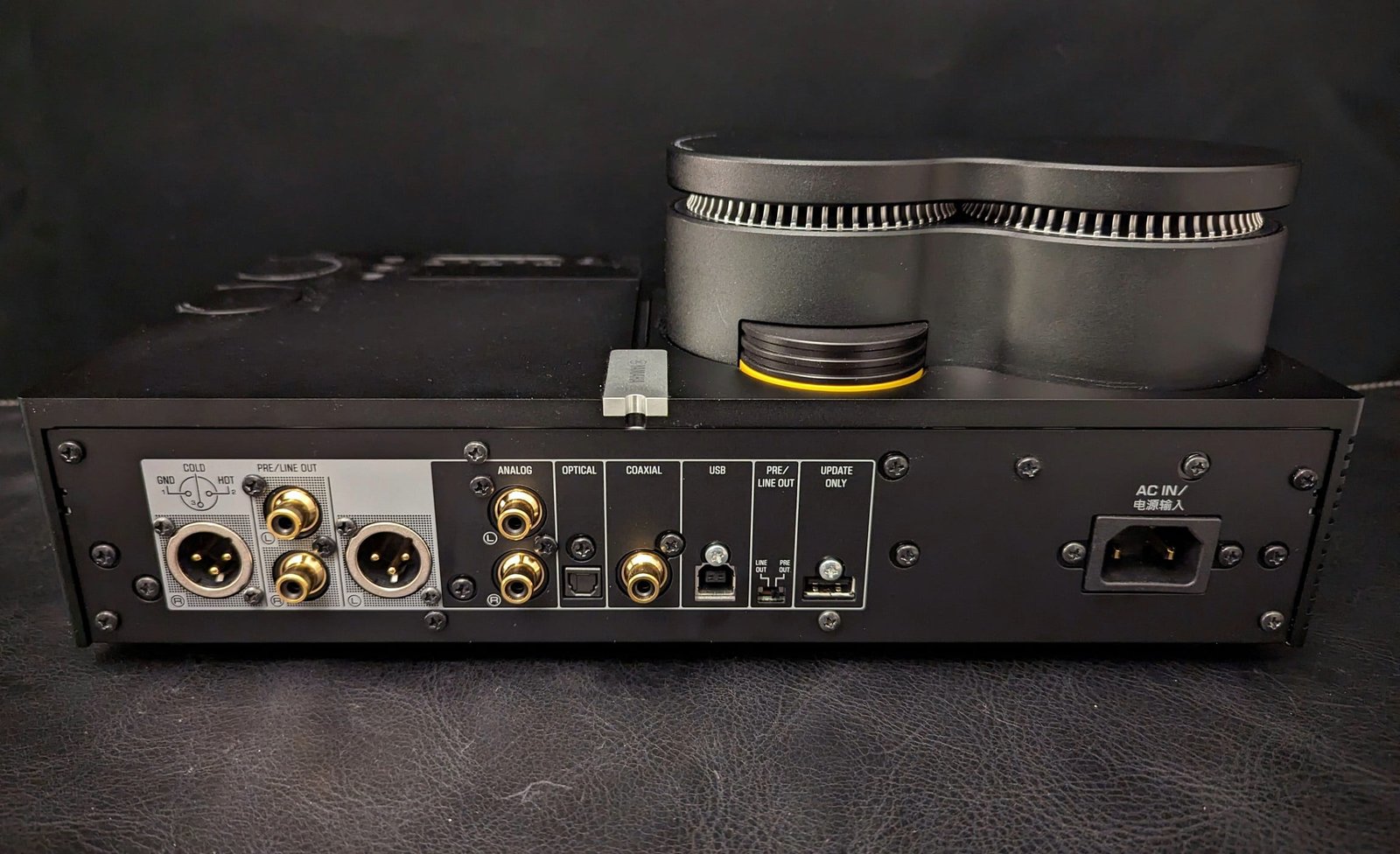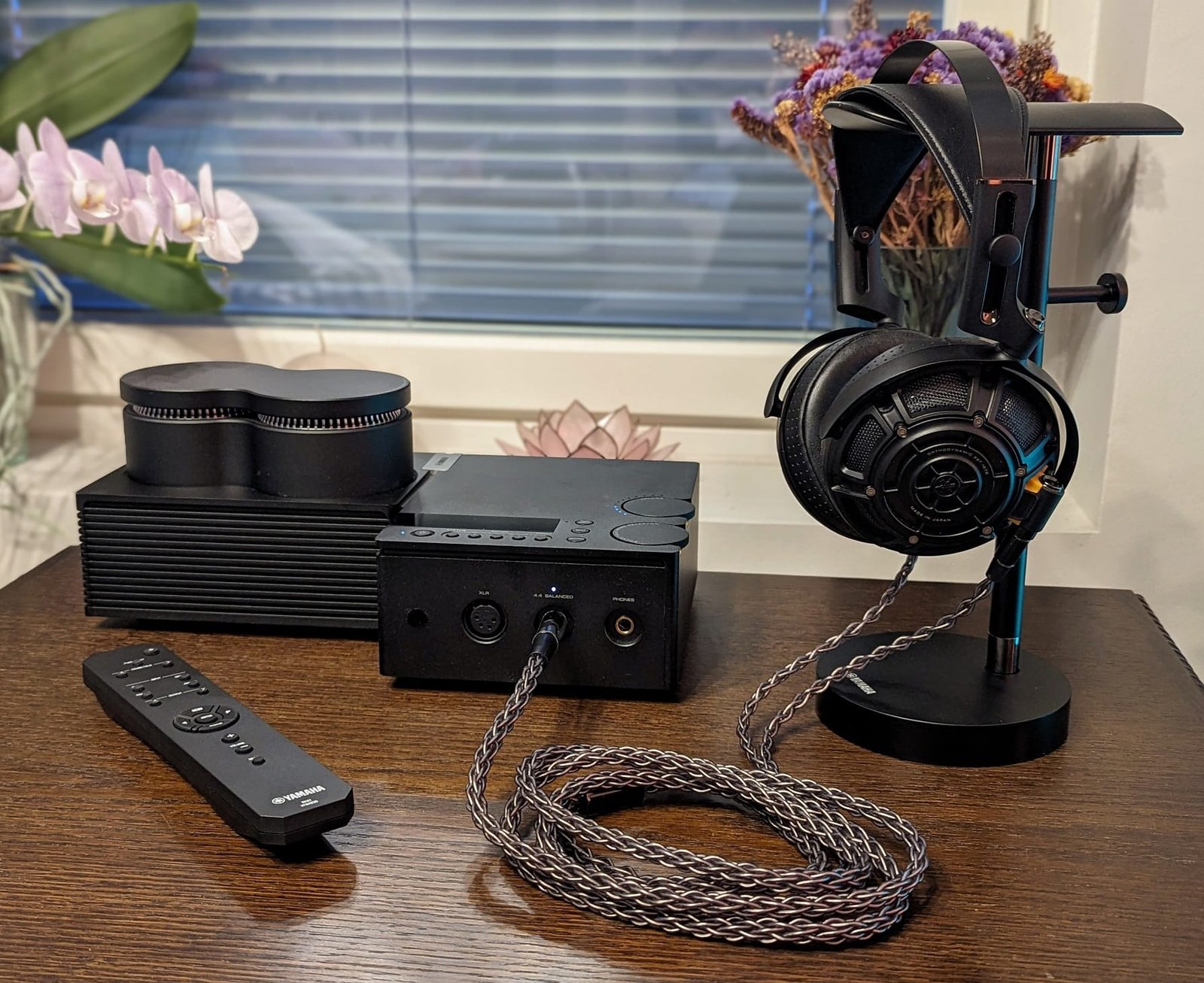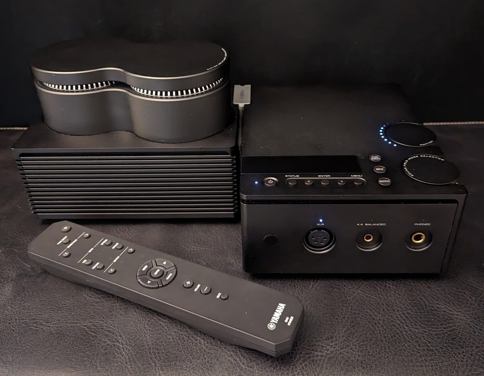 Laitteen etureunassa on puolestaan kolme kuulokeliitintä: balansoitu 4-pin-XLR ja 4,4 mm sekä balansoimaton 6,35 mm. Jokainen näistä tarjoaa saman verran antotehoa, vaikka balansoidut liitännät ovatkin Yamahan mukaan rakenteeltaan aidosti balansoituja, jolloin niiden olettaisi kasvattavan vahvistusta.