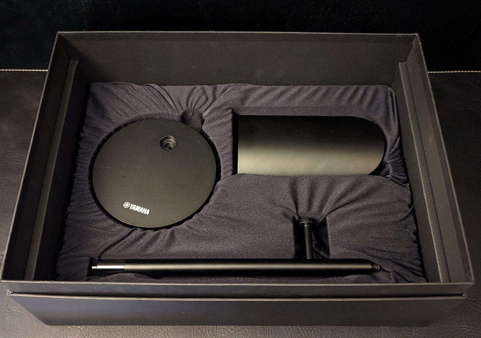 Kuulokkeet toimitetaan suuressa monikerroksisessa pahvilaatikossa. Ylimmästä kerroksesta löytyvät itse kuulokkeet ja ensimmäinen mukana tulevista kaapeleista. Seuraavassa kerroksessa ovat toiset korvapehmusteet sekä toinen kaapeli. Pohjimmaiseen osioon on puolestaan pakattu tukeva alumiininen kuuloketeline, joka täytyy kasata itse. Teline on tyylikäs ja erittäin käyttökelpoinen, joten Yamaha on selvästi kiinnostunut tuotteensa esillepanosta.