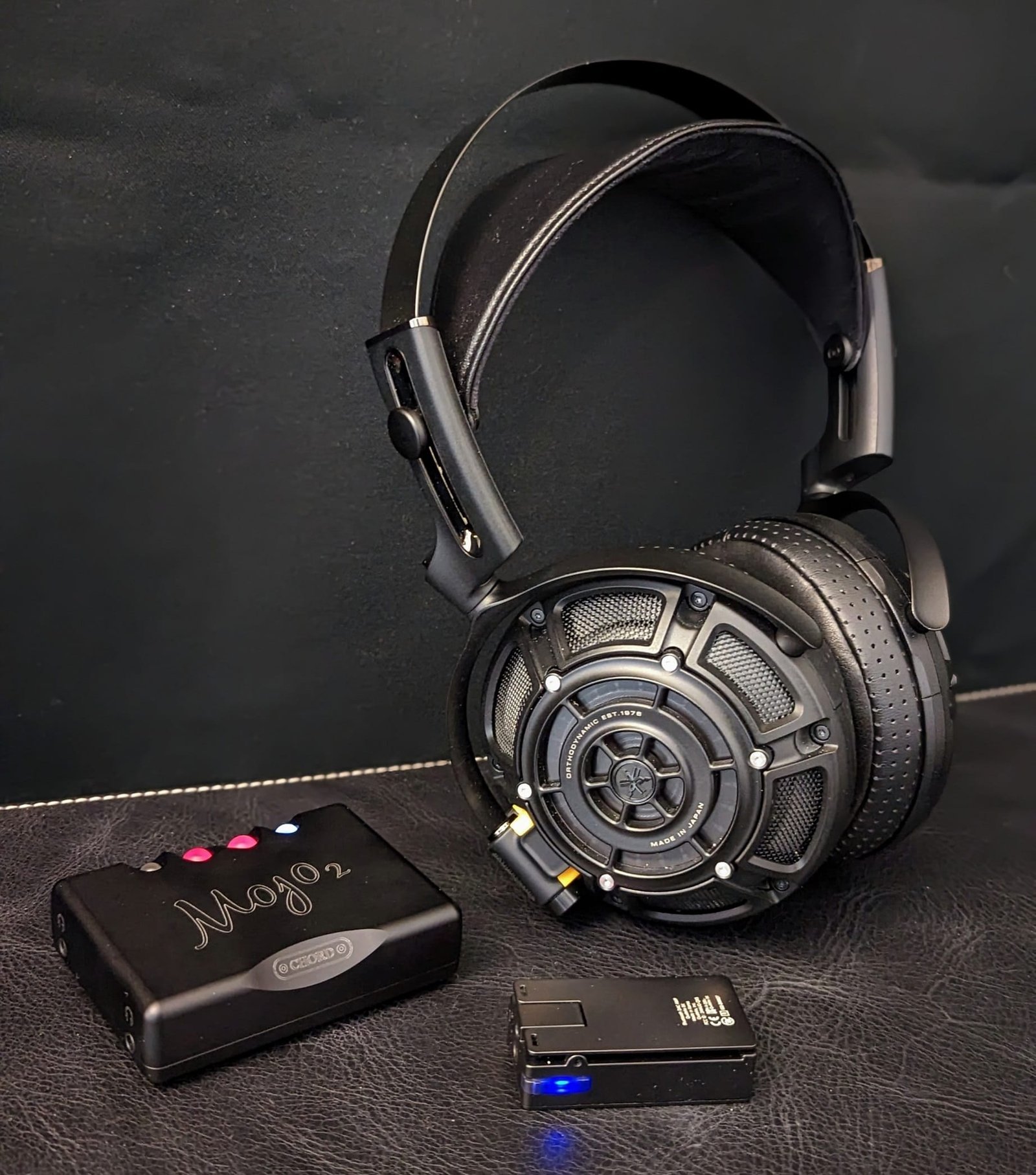 Sain kuulokkeet kuulostamaan lopulta kaikkein parhaimmalta mobiilivahvistimilla, joista löytyy taajuuskorjain. Olen arvioinut Yamahan tuotteiden kanssa samaan aikaan Chord Mojo 2:ta, joka osoittautui toimivaksi ratkaisuksi YH-5000SE:tä mokkapehmusteilla käyttäessä. Tällöin laitteen taajuuskorjainta voidaan käyttää voimistamaan kuulokkeiden yläkeskitaajuuksia oikeasta kohtaa vaikuttamatta samalla 1–2 kHz:n välille yhtä paljoa kuin nahkapehmusteiden kanssa. Muutamalla napin painalluksella YH-5000SE:n äänestä tuleekin selkeämpää ja tasapainoisempaa ja myös Mojo 2:n crossfeed pienimmällä asetuksella sopii kuulokkeille hyvin. Oletusasetuksillaankin Mojo 2 kuulostaa hieman rennommalta ja avarammalta kuin HA-L7A, mutta laitteen taajuuskorjainta ei ole järkeä olla hyödyntämättä.