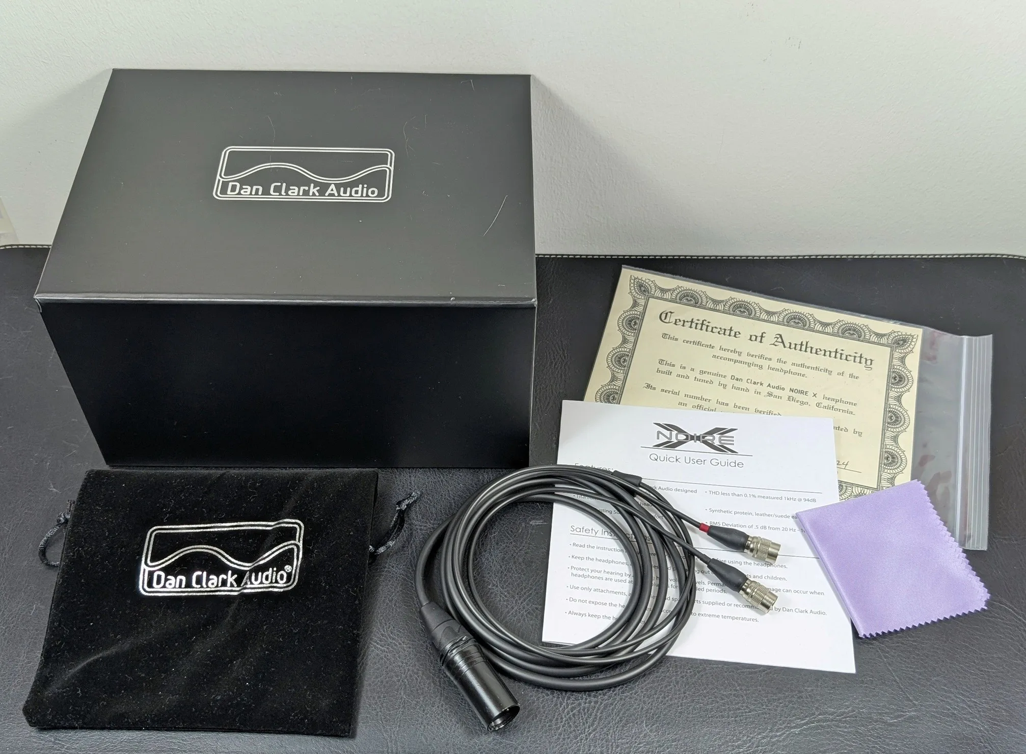 Koska Noire X:n sanka voidaan painaa kuppien ympärille kasaan, tuotepakkaukseen sisältyy tuttu pallomainen kuljetuskotelo. Se on kuulokkeiden kokoon nähden pieni, muttei välttämättä kulje mukana yhtä vaivattomasti kuin monien vastamelukuulokkeiden litteämmät kotelot. Kaapelille ei myöskään ole tilaa kotelon sisällä, mutta sille toimitetaan kuitenkin erillinen pussukka. Lisäksi ostaja saa puhdistusliinan, aitoustodistuksen sekä luonnollisesti myös käyttöoppaan.