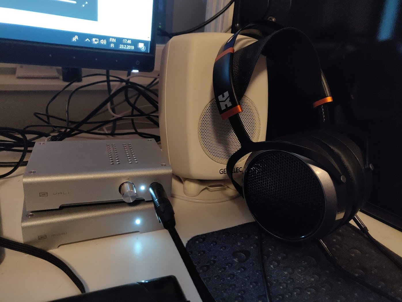 Keskiäänet sen sijaan soivat kuulaasti, mutta hieman kuivan puoleisesti. Tätä on kuitenkin mahdollista hieman muokata valitsemalla kuulokkeille sopiva vahvistin. Toistoa hieman silottelevat, tehokkaat putkihybridit toimivat kuulokkeiden kanssa mainiosti yhteen. En lähtisi käyttämään HE560:aa kliinisestä äänestään tunnettujen THX-vahvistimien, kuten SMSL SP200:n kanssa. Testaamistani vahvistimista Chord Mojo toimi kuulokkeiden kanssa välttävästi, mutta tehokkaammat SPL Phonitor 2730, Gustard H10 ja Burson Soloist olivat selvästi parempia. Hieman yllättäen suosikkivahvistimeni kuulokkeille oli kuitenkin edullinen Schiit Vali 1.