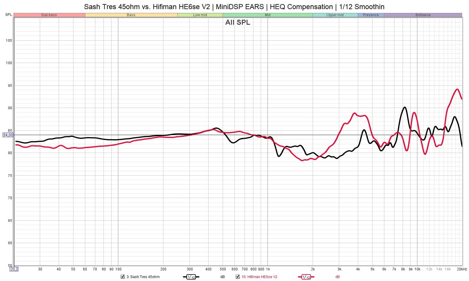 Taajuusvasteen tasapainoa tarkastelemalla vaakakuppi kallistuu väistämättä SASH Tres:in suuntaan. HE6se V2 ei kuitenkaan ole varsinaisesti tunnettu siitä, että se olisi erityisen tasapainoinen kuuloke. Sen vahvuus on pikemminkin räväkkä dynamiikka ja hämmästyttävä kyky tempaista kuuntelija musiikin vietäväksi.