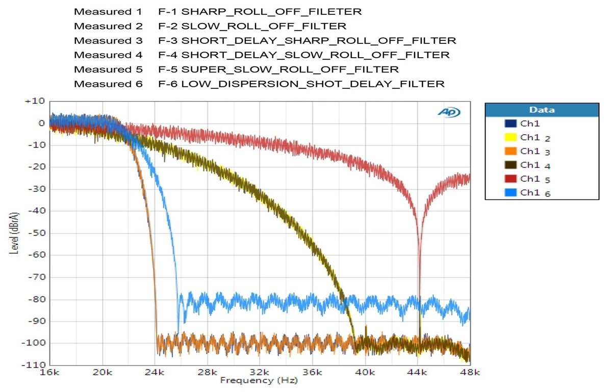 Filtterit eivät ole itselleni aihealueena kovinkaan tuttu, mutta pystyn sanomaan sen verran, etten havaitse niiden välillä minkäänlaista äänenlaadullista eroa, josta osaisin johdonmukaisesti kertoa. Pidänkin filttereitä eräänlaisena turhana lisäominaisuutena, jolla siruvalmistajat, kuten AKM ja ESS, pyrkivät erottumaan toisistaan. Yleensä valmistajan oletusfiltteri on ollut varmin valinta, ja olisikin erikoista, jos laite määritettäisiin toimimaan oletuksena muutoin kuin optimaalisella tavalla.