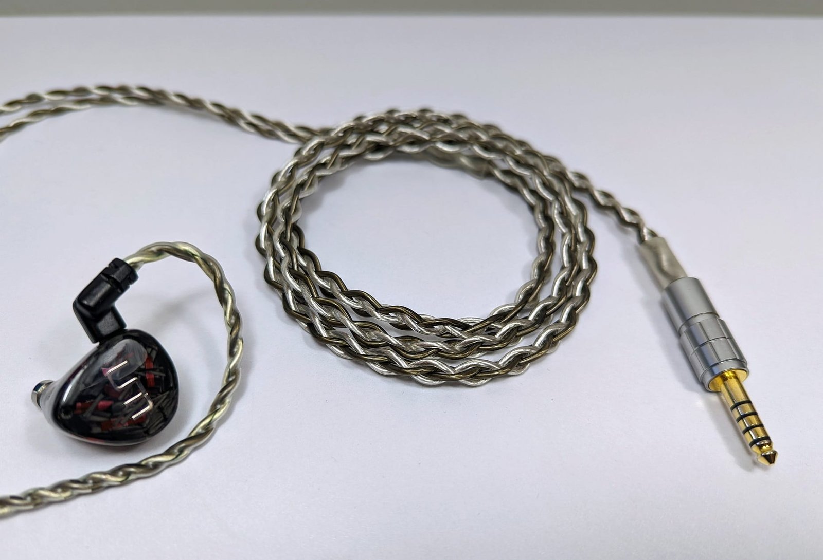 Kuulokkeissa on perinteinen 2-pinninen liitin, joten niissä voidaan käyttää erilaisia kaapeleita. Unique Melodyn punottu vakiokaapeli on miellyttävän taipuisa ja suorana pysyvä, joten en kokisi tarvetta vaihtaa sitä käytettävyyden osalta toisenlaiseen. Kaapelissa on tuttuun tapaan koukkumainen muotoilu, joka ohjaa sen korvan yläpuolelta korvan taakse. Äänilähteeseen kiinnittyvänä liittimenä on jämäkkä 4,4 mm:n balansoitu liitin.