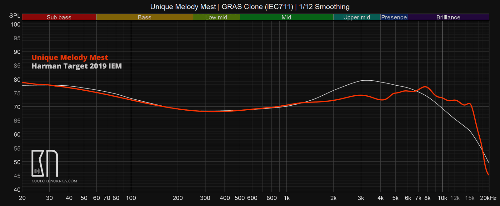 Korvakäytävän ominaisuuksista riippuen korostumia muodostuu erityisesti 3 kHz:stä eteenpäin, ja ne sijaitsevat eri ihmisillä eri taajuuksilla. Omat havaintoni Unique Melody Mest:in äänestä pätevätkin täysin vain niille, joilla on samanlainen sisäkorva ja kuulo kuin itselläni. Mikäli kuulokkeita ei ole mahdollista koekuunnella ennen niiden ostamista, mitatun taajuusvasteen ja oman kuuloaistin välisen suhteen opettelu voi olla hyödyllistä, koska tietämättä arvostelijan kuuloaistia se on varmin tapa ennakoida, miten jotkin kuulokkeet sopivat itselle.
