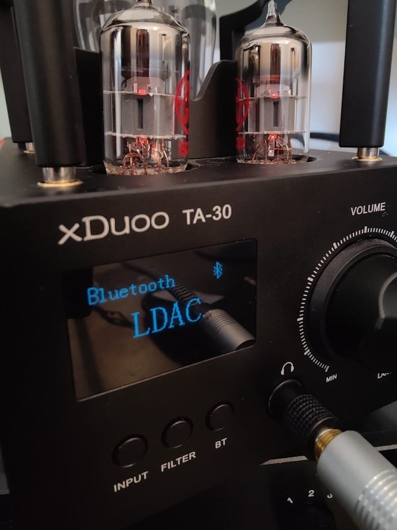Testaamani TA-30 on yhdistelmälaite, joka sijoittuu noin 600 euron hinnallaan valmistajan kärkimalliksi. Xduoo markkinoi vahvistinta harhaanjohtavasti putkivahvistimena, vaikka todellisuudessa laitteen päätevahvistus on toteutettu transistoreilla – ostin itsekin vahvistimen siinä uskossa, että se olisi täysin putkitoiminen. TA-30:n erikoisuus on vaihtovirran tasavirraksi muuntava 5Z3P-tasasuuntaajaputki, sillä mieleeni ei tule äkkiseltään toista hybridivahvistinta, jossa käytettäisiin diodien sijaan putkea. Tämän vuoksi laitetta olikin helppo erehtyä luulemaan täysin putkilla toimivaksi.