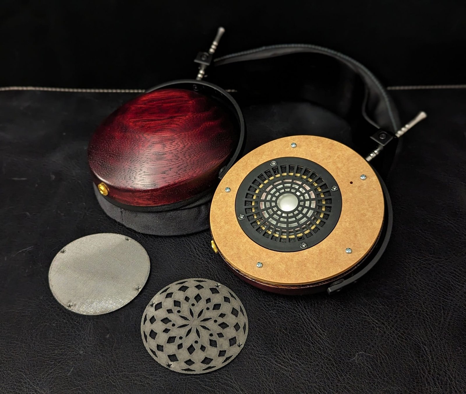 Oletuksena kuulokkeiden elementin etupuolelle on asennettu osittain rei’itetty titaaniverkko (Burst Mesh), joka vaimentaa hieman ylätaajuuksien määrää. Vaihtoehtoisesti verkko voidaan irrottaa diskantin voimistamiseksi kokonaan tai vaihtaa se tuunauskitin mukana tulevaan umpinaiseen malliin (Solid Mesh), jolla ylätaajuudet eivät varmasti ole kenenkään makuun liian kirkkaat. Säätömahdollisuus on edullisuutensa ansiosta mielenkiintoinen, mutten ole varma, kuinka monta verkkojen vaihtamiskertaa elementtiä ympäröivään puukehykseen tehdyt ruuvikierteet kestävät löystymättä. Korvapehmusteiden osalta keinonahkaiset pehmusteet eroavat selvästi kahdesta muusta vaihtoehdosta, kun taas hybridi-pehmusteet ja mokkapehmusteet ovat pohjimmiltaan melko samankaltaiset. Aloitan käsittelyn keinonahkapehmusteista, koska ne olivat omien kuulokkeideni vakiopehmusteet.
