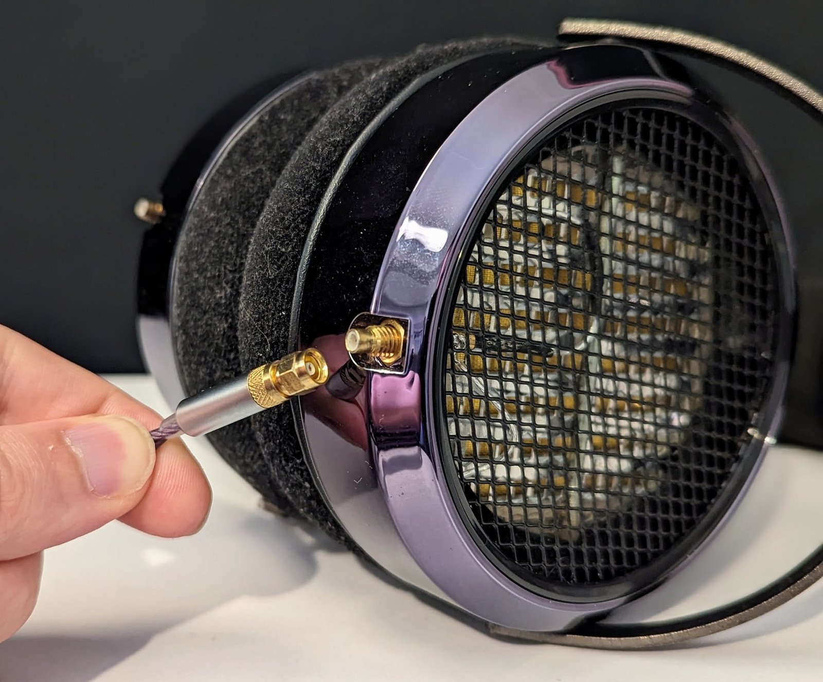 HE-6 on ajalta, jolloin Hifiman käytti kuulokkeissaan kiinni ruuvattavia SMC-liittimiä. Nämä liittimet muistuttavat esimerkiksi tietokoneen emolevyn wifi-antennien kiinnitystä tai joissakin DAC:eissa olevia Bluetooth-antenneja. Liitin on mielestäni kuulokkeissa täysin typerä, mutta luultavasti siitä syystä valmistaja luopuikin aikanaan sen käytöstä siirtyen perinteisempiin 2,5 millimetrin ja 3,5 millimetrin liittimiin. SMC-liittimillä varustettuja kaapeleita on edelleen mahdollista ostaa, vaikkei niitä tietääkseni käytetäkään muiden valmistajien kuulokkeissa joitakin kiinalaisia Music Mastereita lukuun ottamatta.