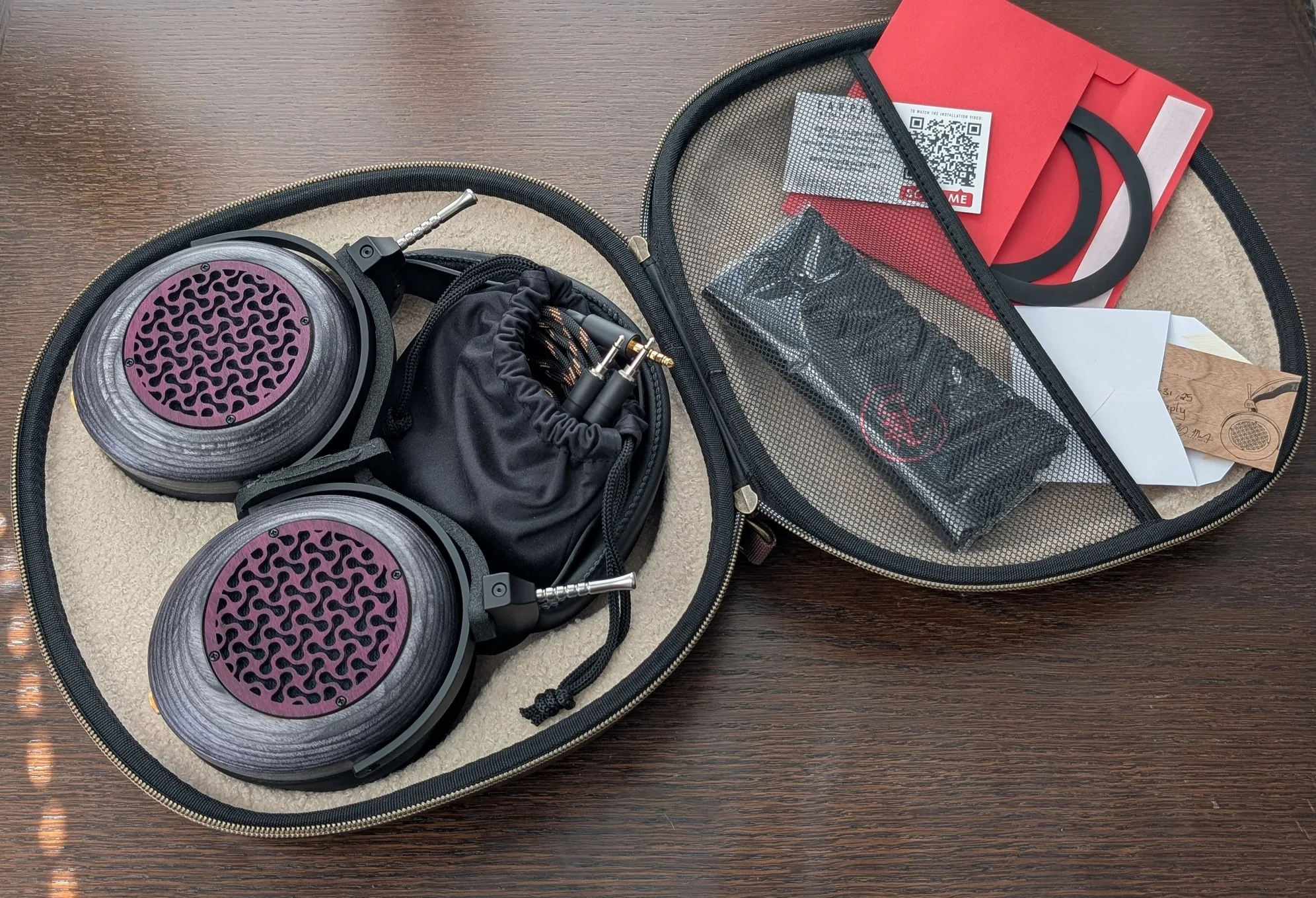 Although the first opening of the case revealed the headphones' appearance to be magnificent, the positive first impression turned into a slight disappointment this time. One of the earpads had detached either during packaging or transport, and the other one was barely hanging onto the headphones. The headphones also smelled strongly of smoke. What the heck, ZMF?