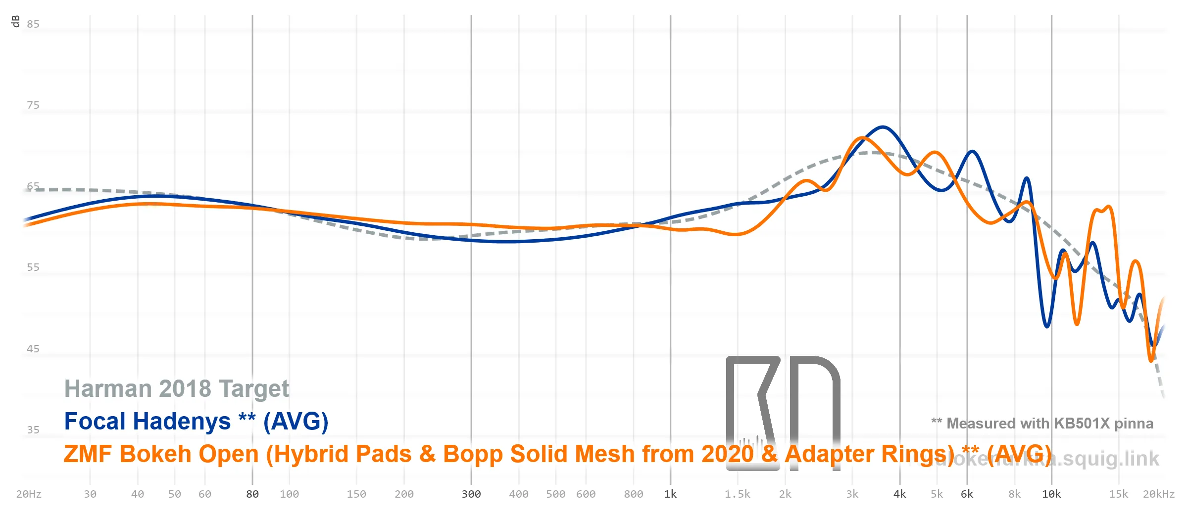With its default settings, the Bokeh Open sounds more neutral in the bass and brighter in the treble than the Focal Hadenys. Therefore, I found the comparison more sensible by considering my own fine-tuned configuration with the ZMF model. The Bokeh Open's sound is designed to be inherently tunable, so it only made sense to do so. For the comparison, I used my preferred tuning: solid meshes installed in front of the drivers and plastic adapter rings placed inside the earpads.