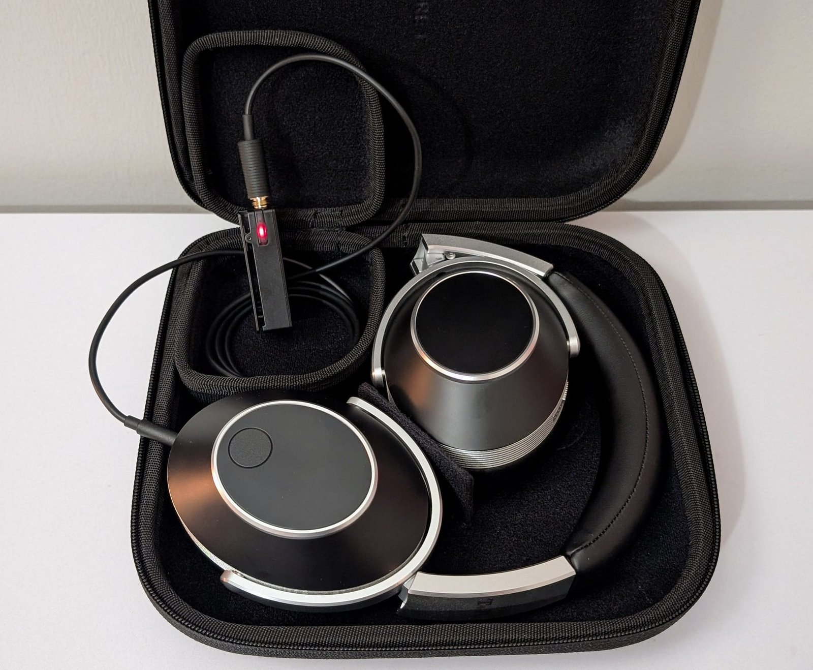 Monikerroksisesta tuotepakkauksesta paljastuvat ensin tarjottimella itse kuulokkeet, joiden alapuolelta löytyy käyttöoppaan sisältävä pahvikuori ja neliskanttinen kuljetuskotelo, joka painaa lähes puoli kiloa. Yksi mukana tulevista kolmesta kaapelista on pakattu erikseen, kun taas kaksi muuta on sijoitettu kotelon sisälle magneeteilla sulkeutuvaan lokeroon. Sieltä löytyy myös lentokoneadapteri sellaista tarvitseville. Vaikka kuulokkeet suoraan koteloonsa pakkaamalla valmistaja olisikin voinut puolittaa pakkauskokonsa, kallis tuote on mukavaa saada arvokkaasti esitettynä.