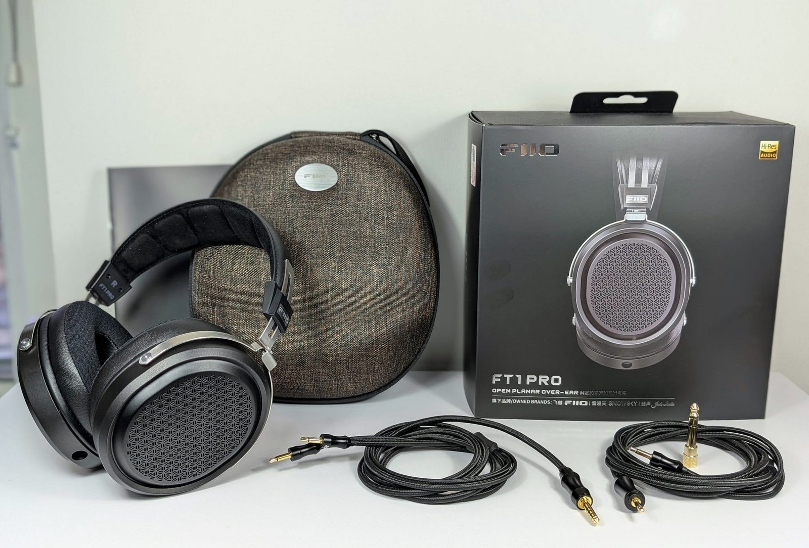 FiiO on tullut tunnetuksi tavallista kattavammasta varustelutasosta, joka toteutuu ilahduttavasti myös FT1 Pro:n kohdalla. Ostaja saa käyttökelpoisen kuljetuskotelon sekä kaksi perushyvää kaapelia, joista ensimmäinen on balansoimaton (liitin 3,5 mm / adapterilla 6,35 mm) ja toinen balansoitu (liitin 4,4 mm). Kuulokekuppeihin nämä kiinnittyvät nykyaikaisesti kahdella 3,5 millimetrin liittimellä, joten markkinoiden vaihtokaapelitarjontakin olisi laaja.