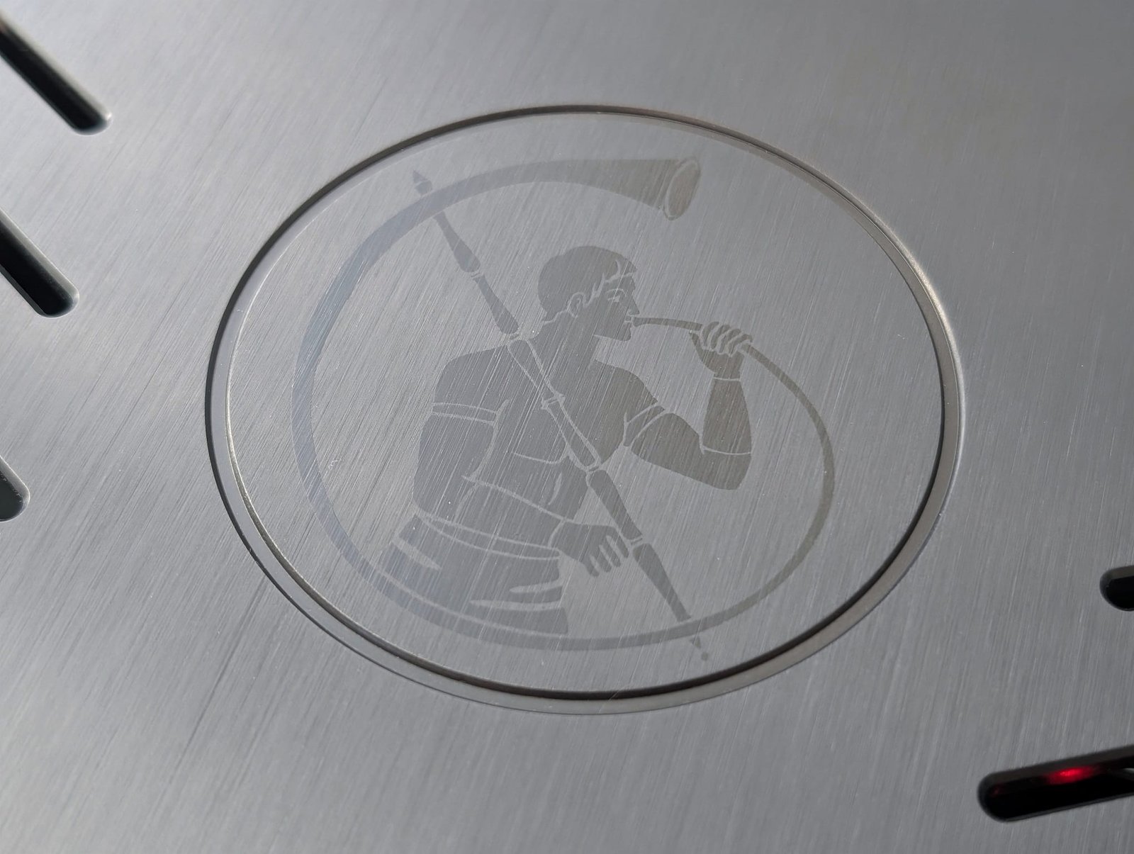 Vaikka HP-10 onkin kooltaan hieman OOR:ia korkeampi ja syvyyssuunnassa pidempi, laitteiden varaamassa pöytätilassa ei lopulta ole suurta eroa. Lainaan saamani HP-10 Deluxe on väriltään musta, mutta laitetta myydään myös hopeisena ja valmistajan nimeen viitaten kultaisena. Runkoon tehdyt suuret tuuletusaukot toimivat hyvin, koska en havaitse pidemmässäkään käytössä minkäänlaista yläkannen kuumumista. Keskelle kantta lisätty valmistajan logo näkyy hillitysti hieman anodisoitua alumiinia kiiltävämpänä, kun taas etuylänurkan kultainen ”kolikkologo” toimii jo mustassa laiteversiossa selkeänä katseen kiinnityspisteenä.