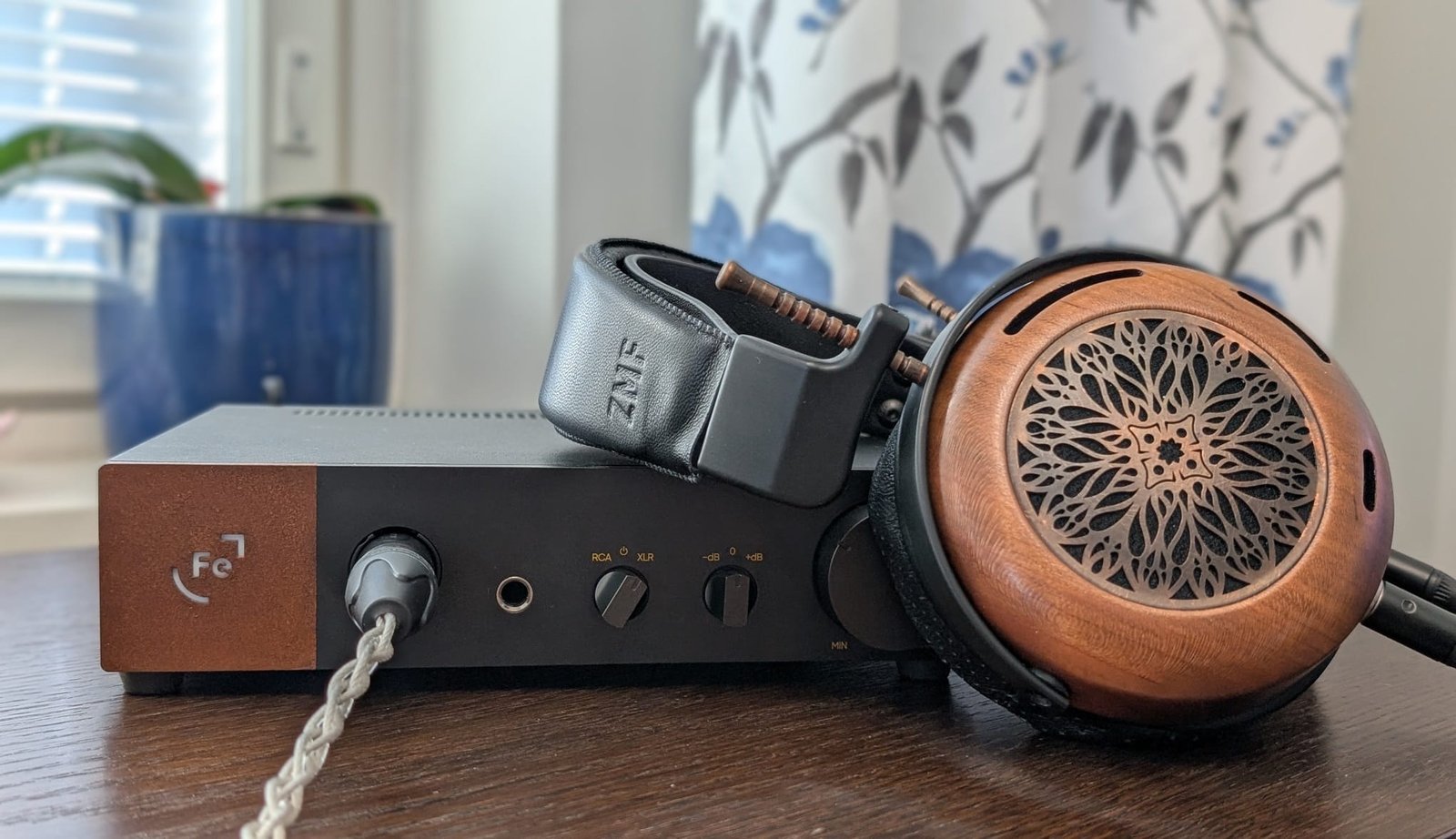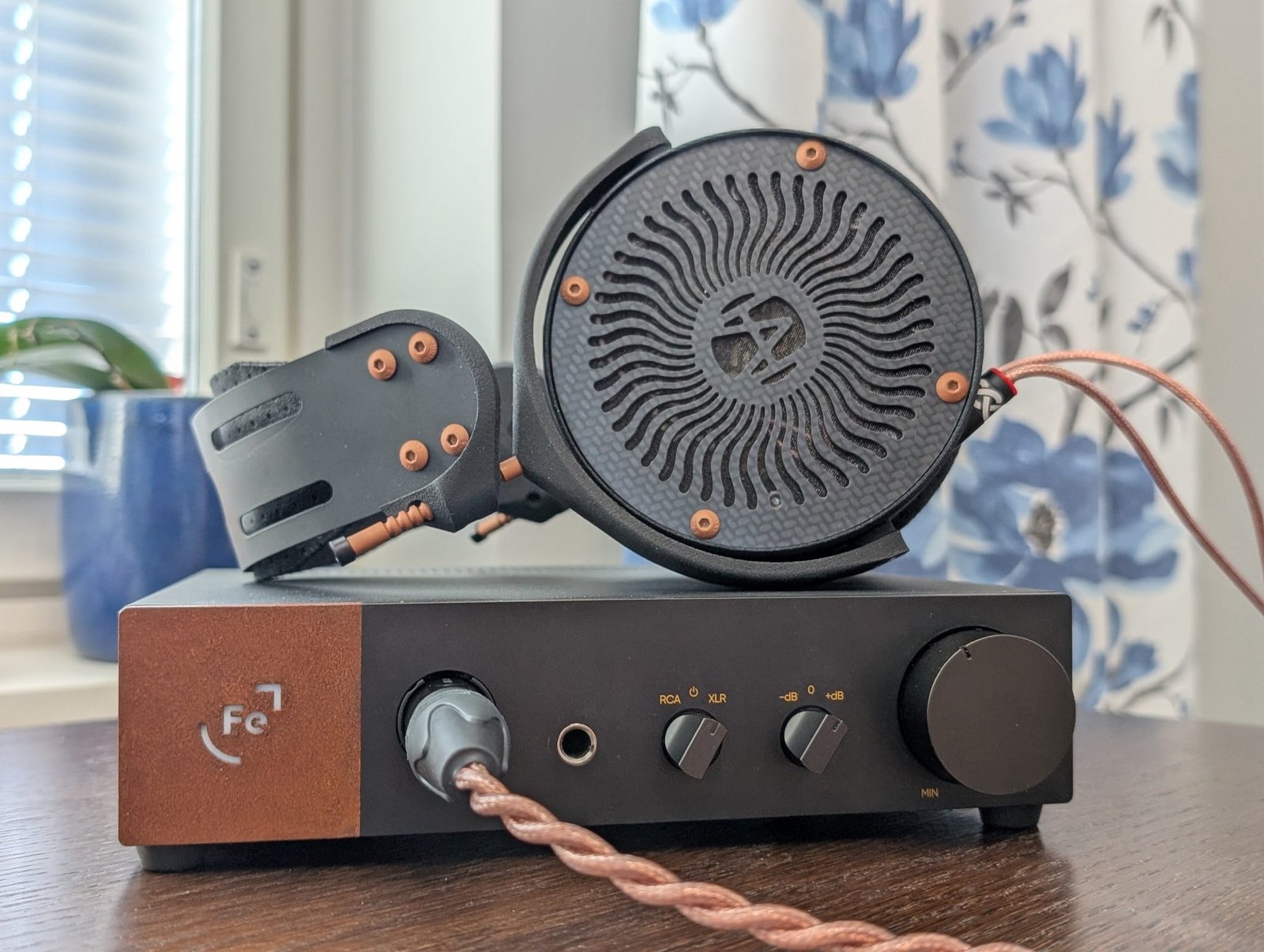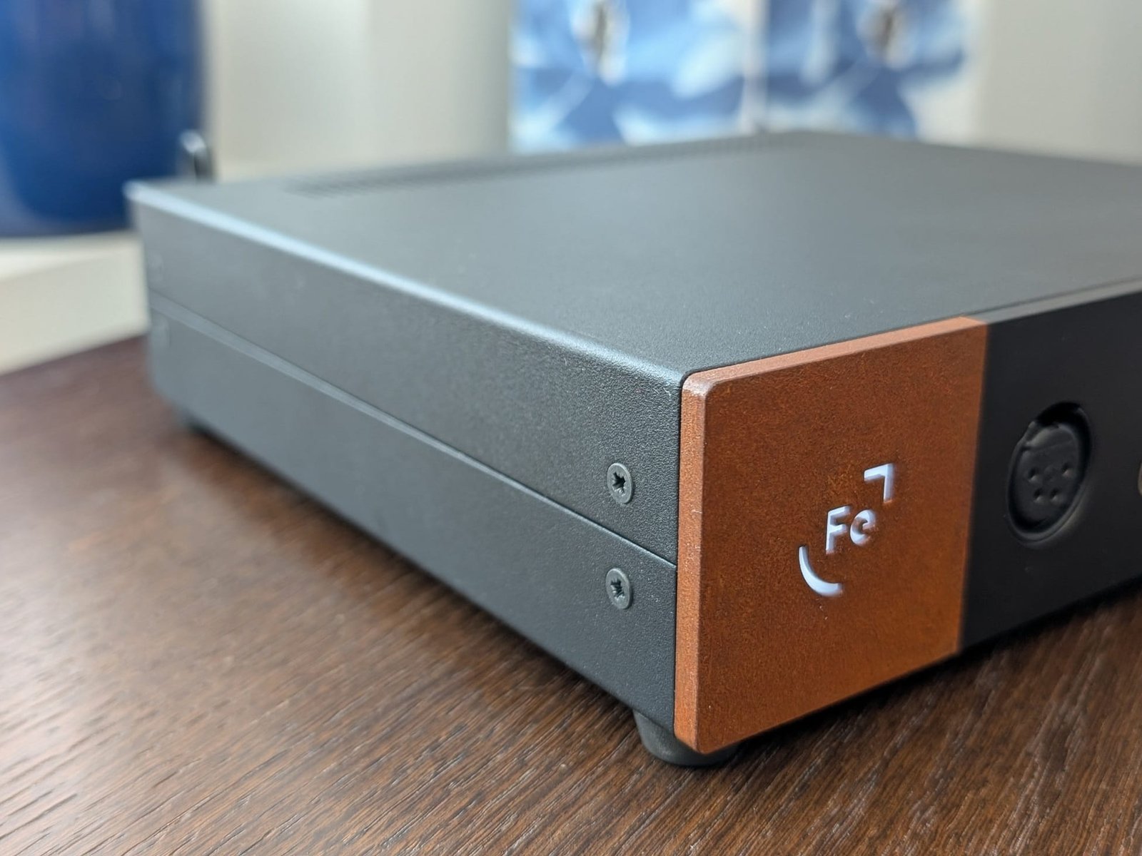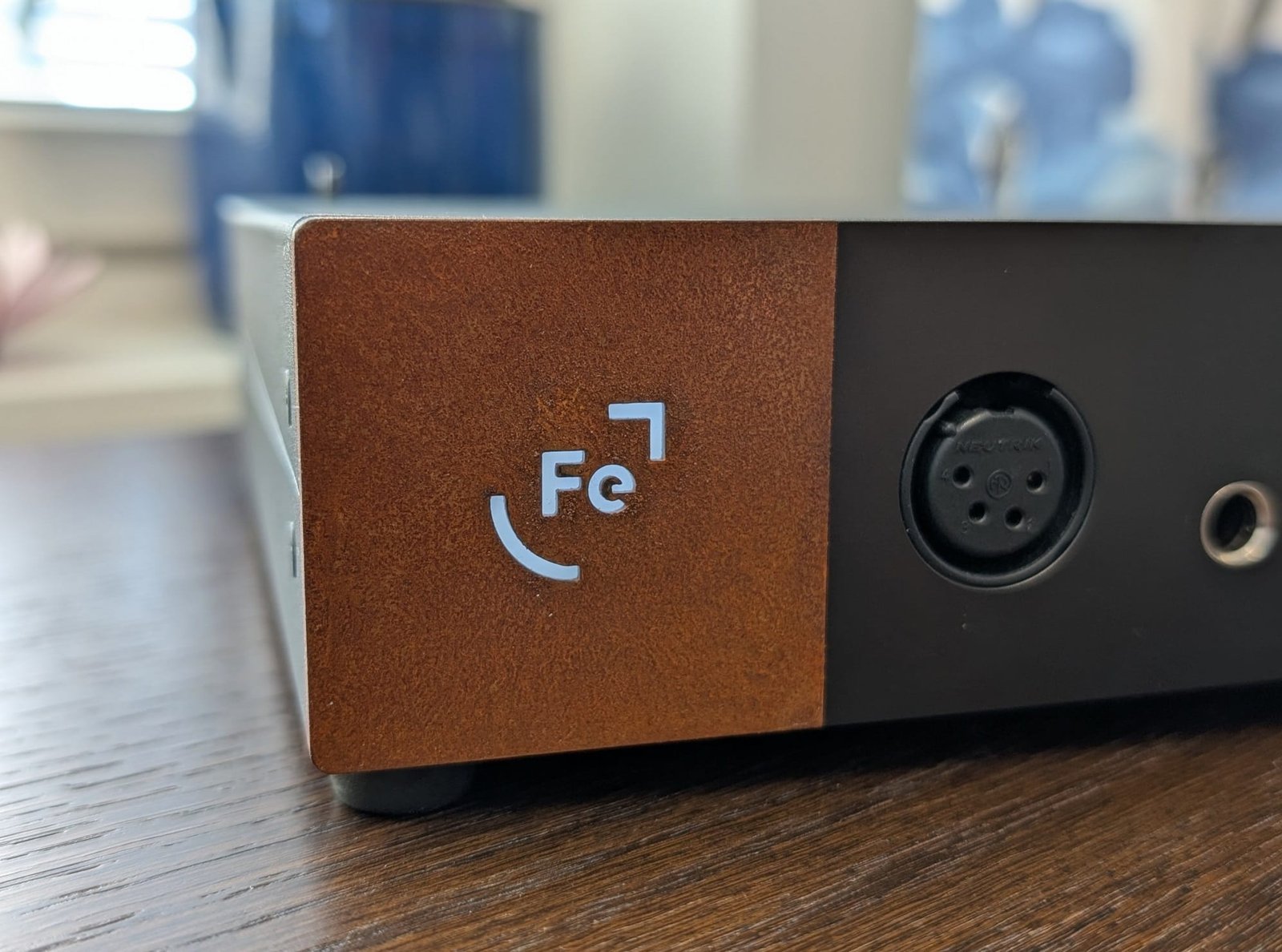 OOR näyttää melko perinteiseltä mustalta laatikolta, jossa huomio kiinnittyy kuitenkin vasemman etureunan ruosteenväriseen alueeseen ja sen keskellä valkoisena loistavaan Fe-logoon. Neliönmallinen osa on tehty corten-teräksestä, jonka pintaan muodostuu luontaisesti hapen ja ilmankosteuden vaikutuksesta niin luja oksidikerros, että materiaalia kutsutaan myös säänkestäväksi teräkseksi – varsin kiinnostava yksityiskohta kuulokevahvistimessa. Muutoin OOR tuntuu jopa ihmeellisen halvalta, koska sen pellistä taivutettu runko ei varsinaisesti luo mielikuvaa 2000 euron vahvistimesta, vaan muistuttaa pikemminkin alle 200 euroa maksavia kiinalaisia laitteita. Ilman rungon koputtelua tai tunnustelua asia ei kuitenkaan lopulta itseäni suuremmin häiritse.