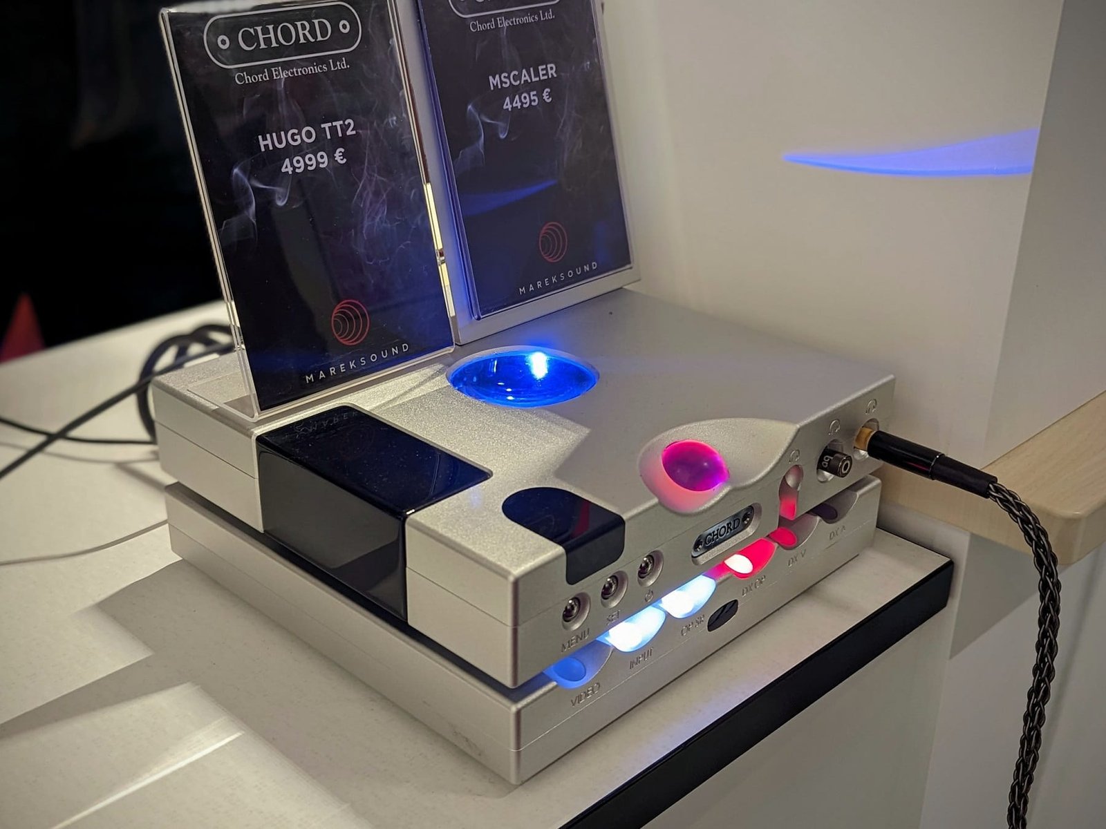 Mareksoundin esittelypisteellä oli aiemmin mainitsemieni Yamaha HA-L7A- ja T+A HA 200 -kuulokevahvistimen lisäksi McIntosh MHA200-putkivahvistin (hinta 3200 euroa) sekä Chord Hugo 2 ja TT2 & MSCALER -yhdistelmä (kokonaishinta noin 9500 euroa).