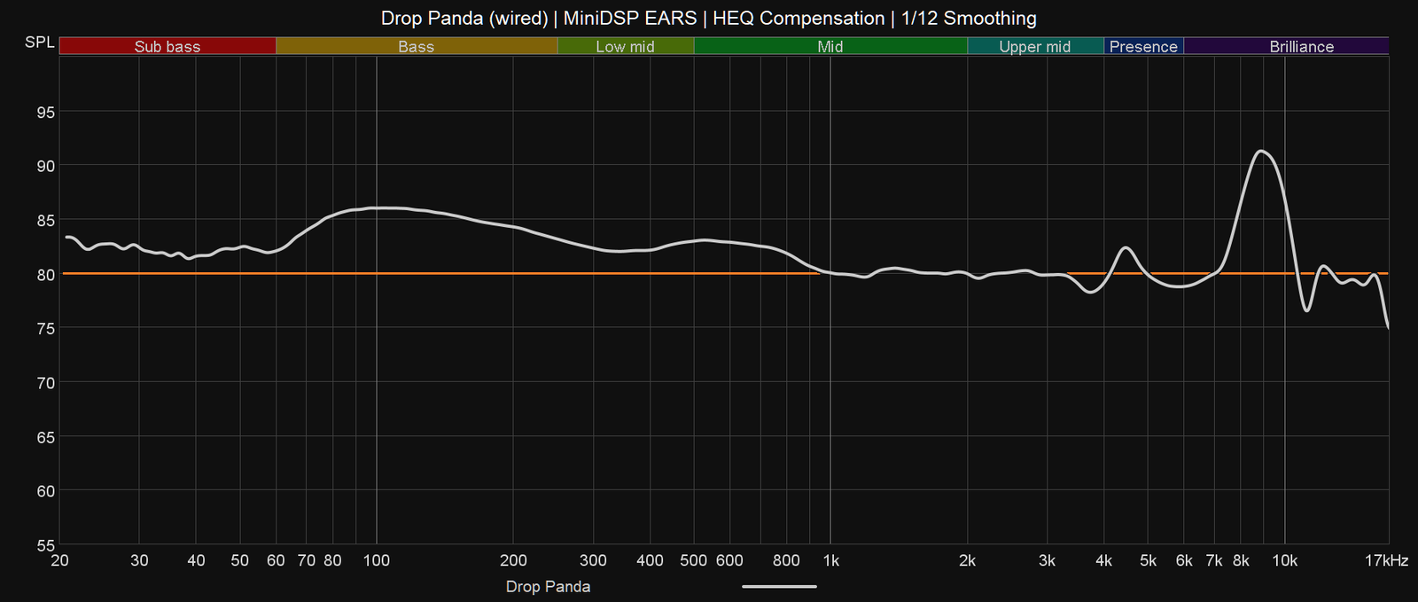 Tämä on pitkälti seurausta siitä, että 1 kHz:n alapuoliset taajuudet korostuvat kokonaisuudessa aivan liikaa, minkä lisäksi ylemmästä diskantista puuttuu 10 kHz:n yläpuolelta kaikki ilmavuus. Keskitaajuuksien tuunaus on muutoin hyvä, ellei jopa erinomainen, mutta kaikki toistuu pielessä olevan tasapainon vuoksi ärsyttävän epäselvänä. Panda kuulostaa todella suljetulta ja tukkoiselta. Taajuusvastemittauksissani 9 kHz:n kohdalla näkyvä diskanttipiikki ei ole todellisuudessa kovinkaan voimakas, mutta se muuttaa Pandan diskantin epämääräiseksi sihinäksi, josta ei saa ollenkaan selvää. Diskantti vaatisi energiaa myös korostuman ympärille.