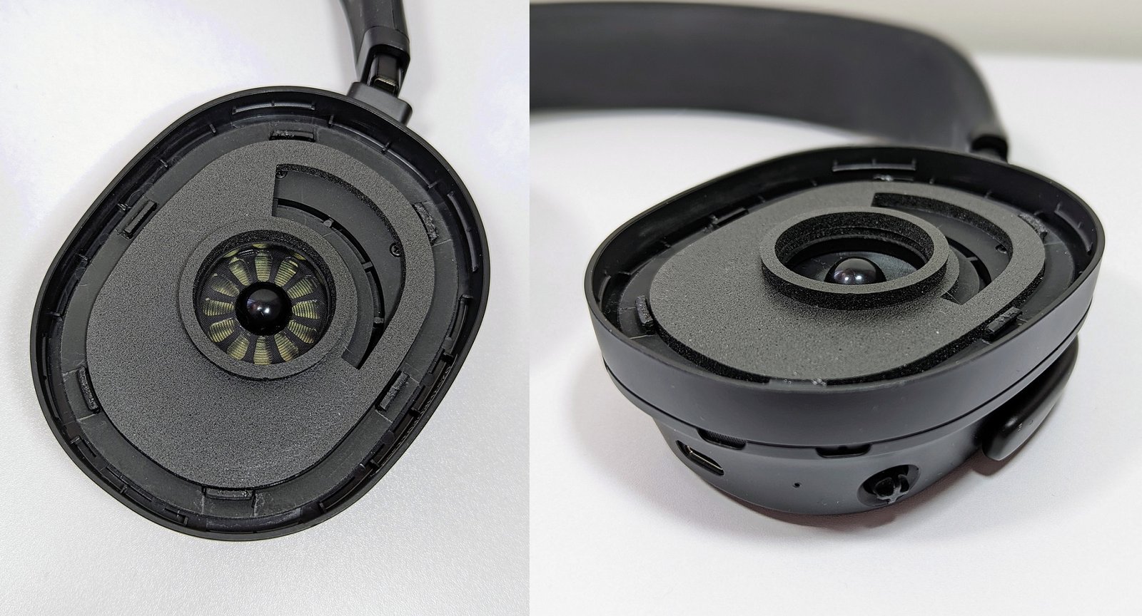 Panda on tehty pääasiassa muovista, mutta kupit yhdistyvät pääpantaan metalliosilla. Kaikki kuulokkeiden liikkuvat osat rutisevat ja natisevat halvan oloisesti. Lisäksi kuppien sivuttaissuunnassa kääntymisen mahdollistava sarana tuntuu todella heikolta ja väljältä. Lukemani perusteella saranan hajoaminen on varsin yleistä, vaikka se onkin tehty metallista. Saranan ansiosta kupit kääntyvät vaakatasoon, jolloin kuulokkeet mahtuvat mukana tulevaan säilytyskoteloon. Kupit kääntyvät hieman myös pystysuunnassa mekanismilla, jossa on Focalin kuulokkeiden tyyliset jouset, jotka työntävät kuppeja takaisin oletusasentoonsa.