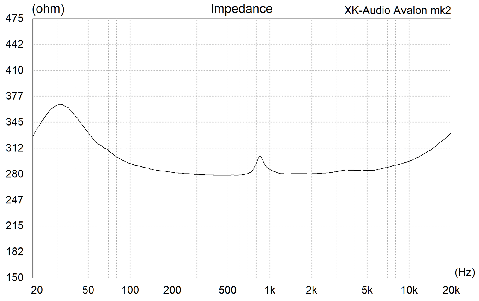 Mittausteni perusteella Avalon mk2:n impedanssi asettuu pääosin 280 ohmin tuntumaan, mutta nousee taajuuskaistan ääripäissä ylöspäin enimmillään 360 ohmiin saakka. Impedanssi on kuitenkin kauttaaltaan riittävän korkea, jottei esimerkiksi vahvistimen 120 ohmin lähtöimpedanssi muuta taajuusvastetta käytännössä ollenkaan verrattuna alle 1 ohmin lähtöimpedanssiin. Avalon mk2 on siis lähestulkoon immuuni laitteiston impedanssille taajuusvasteen näkökulmasta.