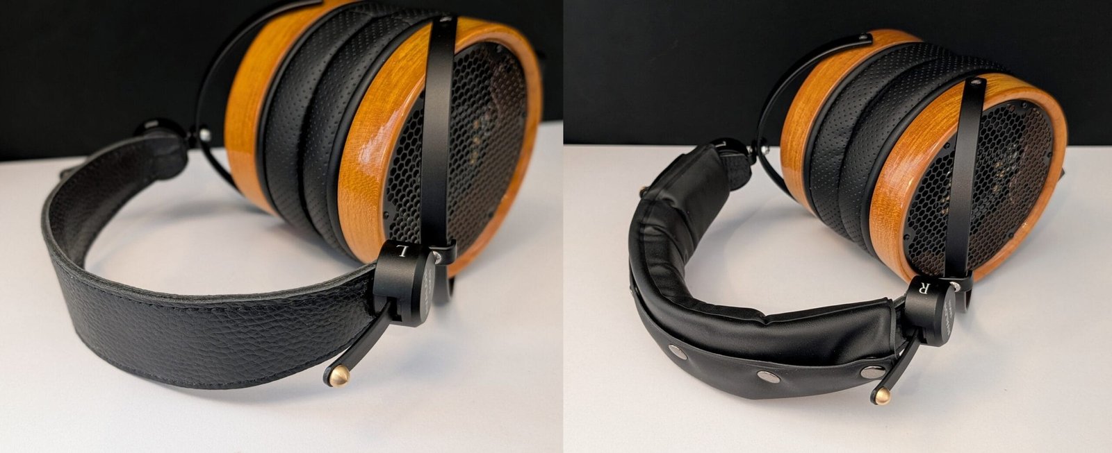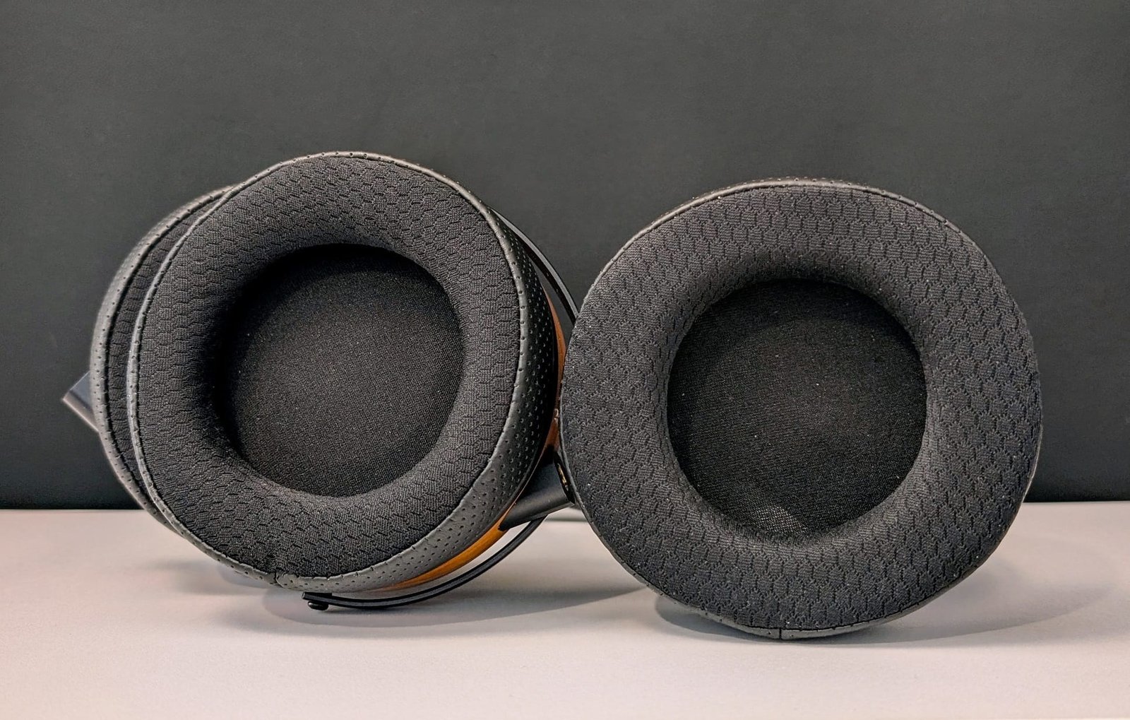 Hybridi-tyyliset korvapehmusteet muistuttavat materiaaleiltaan Hifimanin pehmusteita. Rei’itetyn keinonahan ja urheilukankaan sisään sujautettu vaahto tuntuu todella pehmeältä. Pehmusteiden korva-aukko on myös poikkeuksellisen tilava, koska muutoin osa elementtien suuresta kalvosta jäisi piiloon reunan alle. Kuulokkeisiin voitaisiin vaihtaa esimerkiksi ZMF:n pehmusteet, mutta pienemmän korva-aukon vuoksi tämä kannattaa unohtaa äänenlaadun näkökulmasta. Koska vakiopehmusteille olisi ylipäätään vaikeaa löytää toimivaa korvaajaa, onkin hyvä, että ostaja saa kuulokkeiden mukana toisetkin pehmusteet. Luulin näiden olevan identtiset, mutta korva-aukon halkaisija on 5 millimetriä pienempi eli pehmusteen reunus on toisin sanoen leveämpi. Tämä parantaa kuulokkeiden istuvuutta ja leveämpi reuna sulkee lisäksi elementin kehyksen ilma-aukot tiiviimmin. En silti olisi uskonut, miten suuri vaikutus jo näin pienellä muutoksella on taajuusvasteeseen.